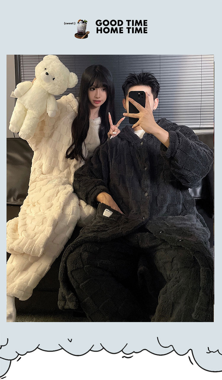 カップルのパジャマ冬のサンゴのベルベットは保温フランネルを厚くして秋冬の外で男女の家庭服セットを着ている