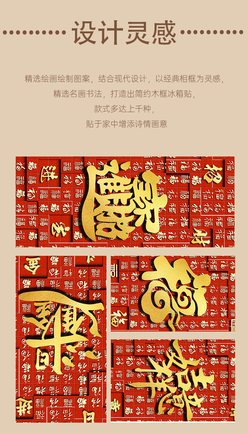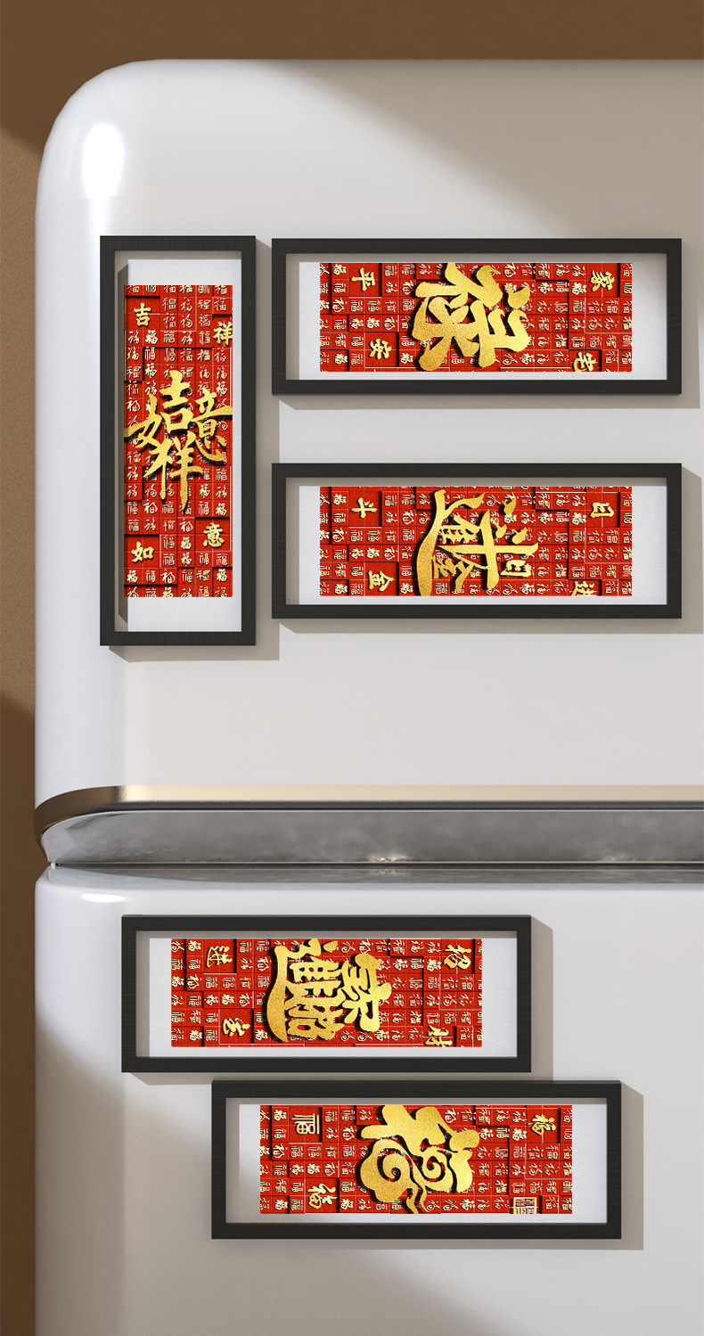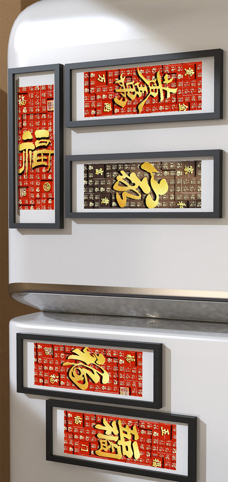 金箔福の字の巻物の冷蔵庫は立体の五福を貼って門に臨みます。