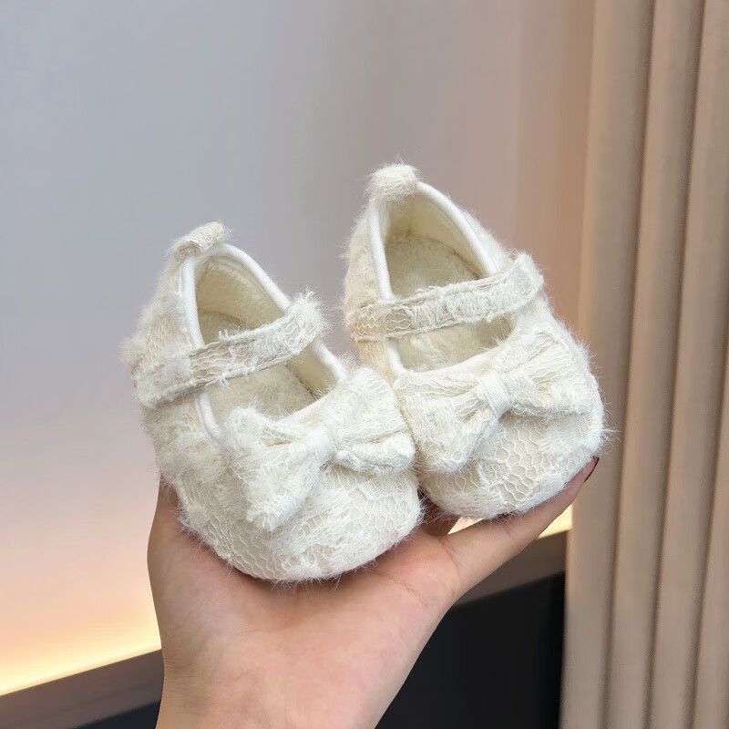 秋冬季新款婴儿鞋蕾丝花边毛绒防滑韩版公主鞋女宝宝软底学步鞋