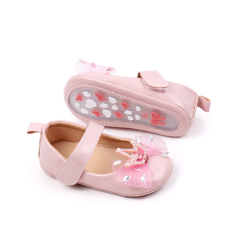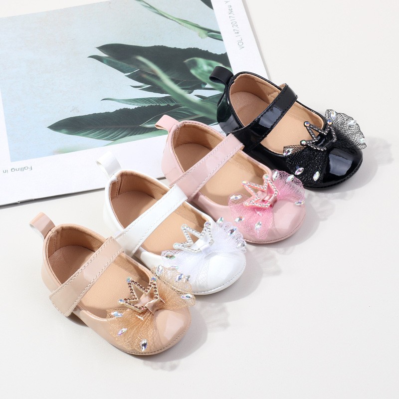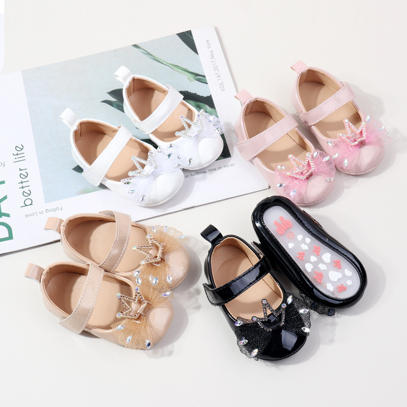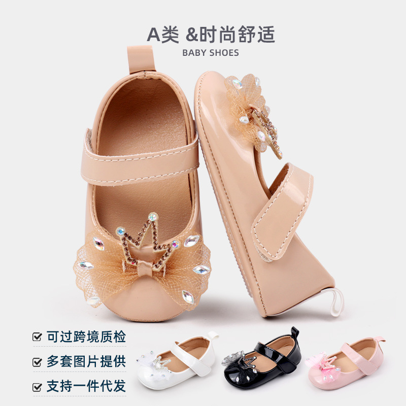 春と秋の赤ちゃんの滑り止めの靴の女性の子供のファッションの水ドリルのクラウンの王女の靴0一二歳の赤ちゃんのカジュアルシューズ