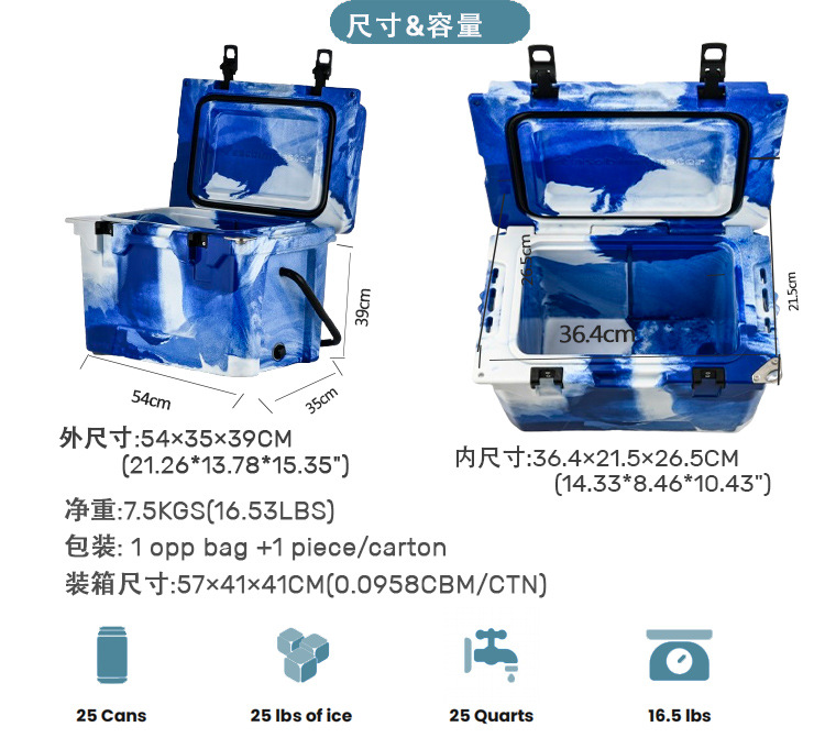 工場加工ファンカラー25QTポータブルミニ冷蔵庫ロールプラスチック保温箱輸送輸送冷蔵箱