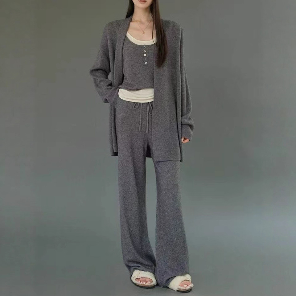 2025年秋冬レディース欧米風クロスボーダー新作カジュアル万能グレーゆったりロング丈セーターカーディガン