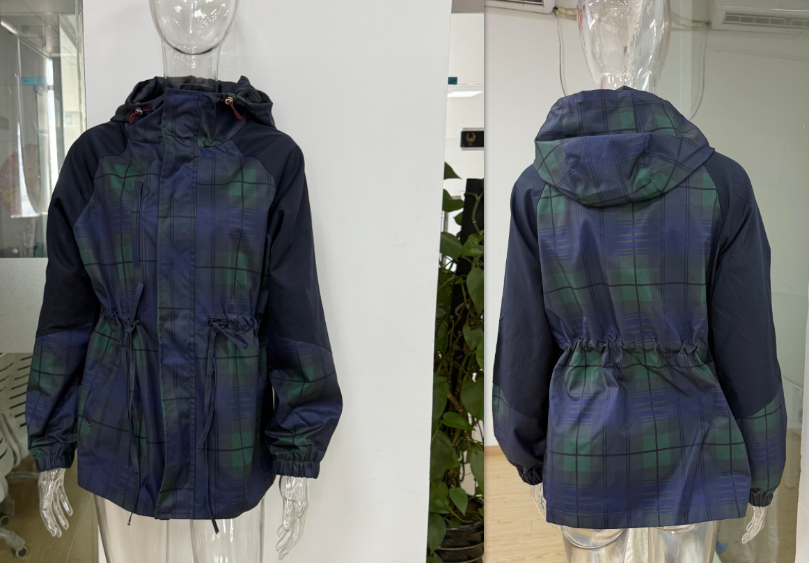 2025年秋冬爆款时尚跨境撞色连帽抽绳收腰短款夹克冲锋衣外套女装