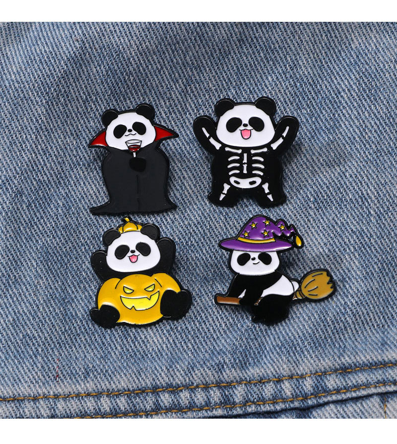 2024ハロウィーンパンダバッジリュックサック装飾品かわいい変なブローチパーティーのプレゼントバッジ