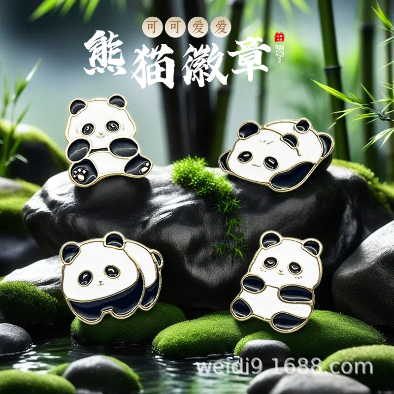 中国風パンダブローチ国潮記念品漫画バッジリュックサックカップル服アクセサリーピン留め装飾品