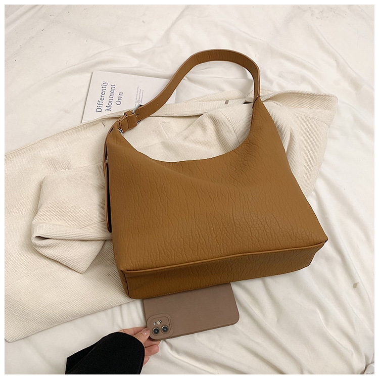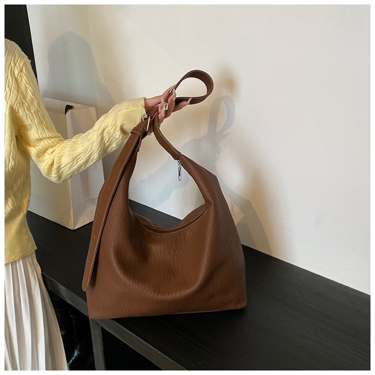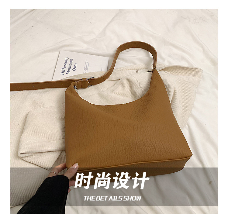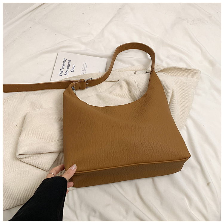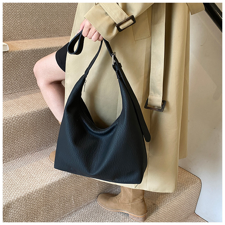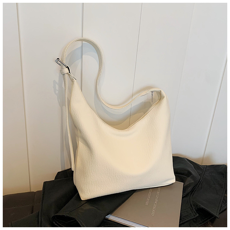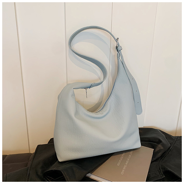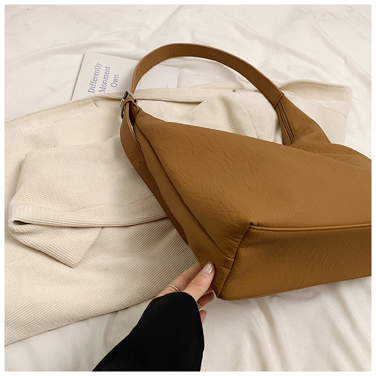 国境を越えたしわシングルショルダーバッグinsシンプルで柔らかいモチモチとしたトートバッグ純色大容量通勤脇下バッグ斜め掛け女性バッグ