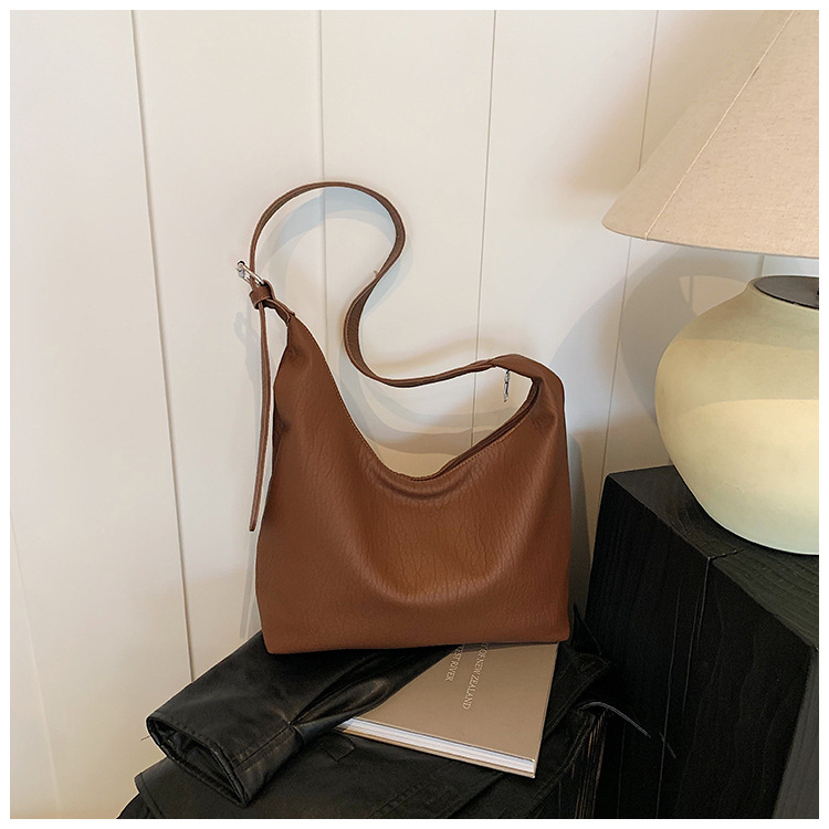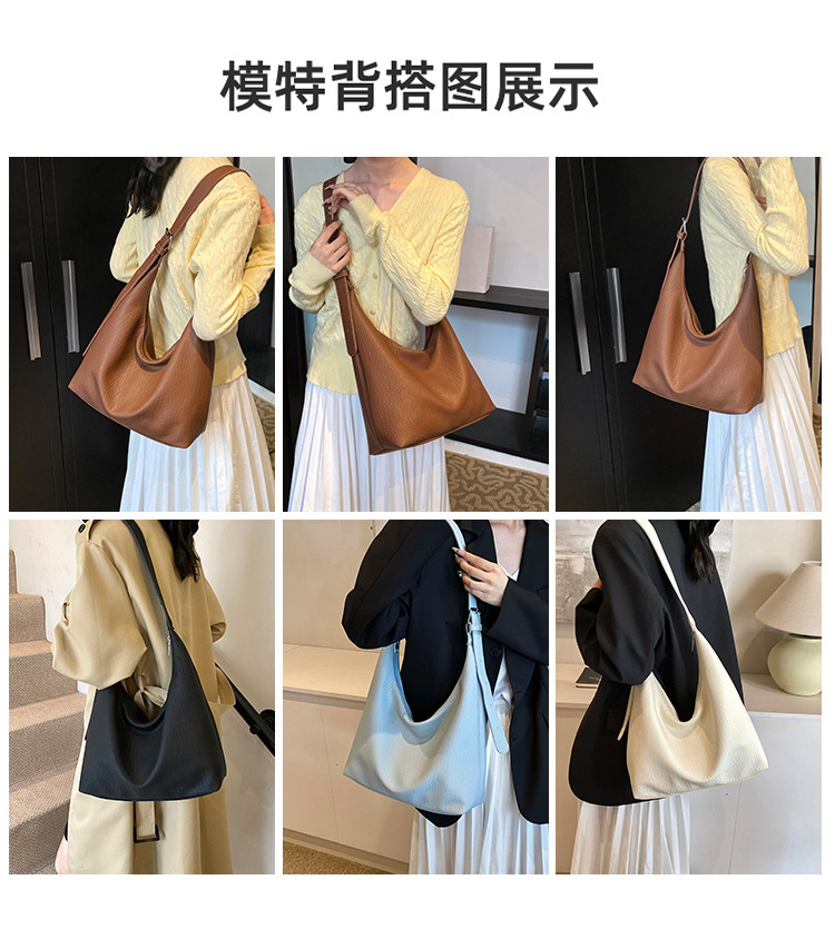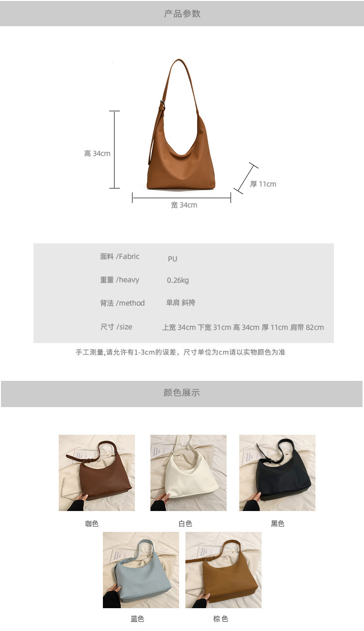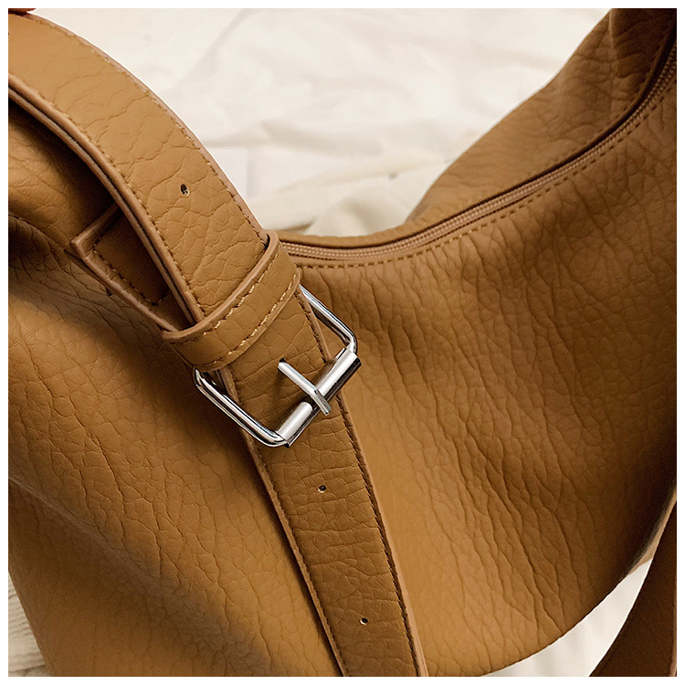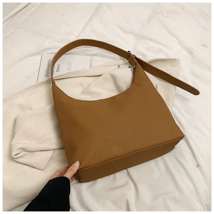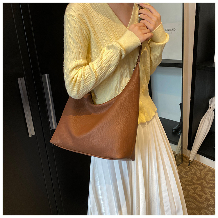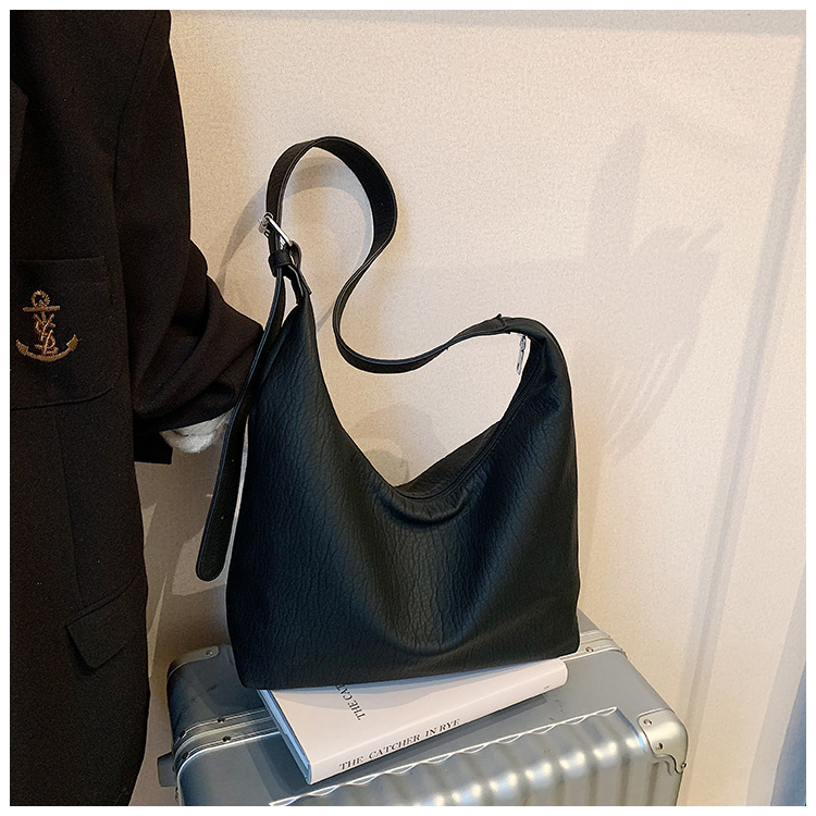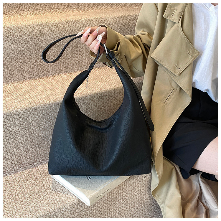 国境を越えたしわシングルショルダーバッグinsシンプルで柔らかいモチモチとしたトートバッグ純色大容量通勤脇下バッグ斜め掛け女性バッグ