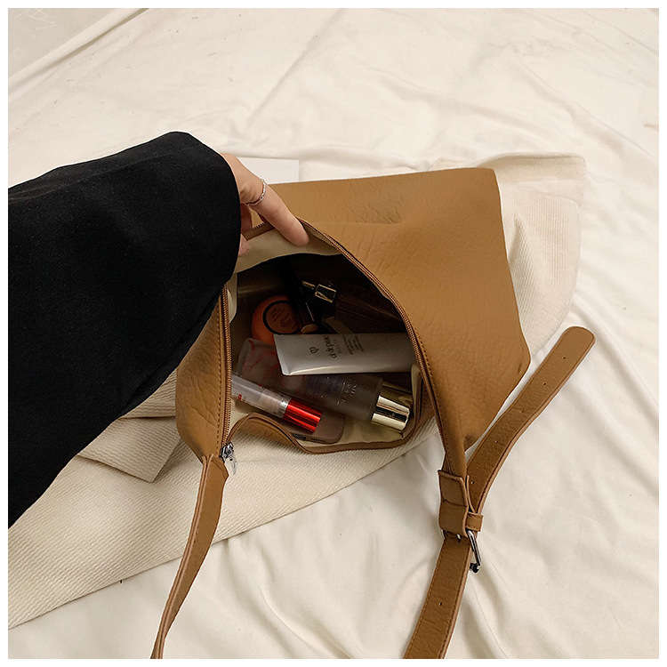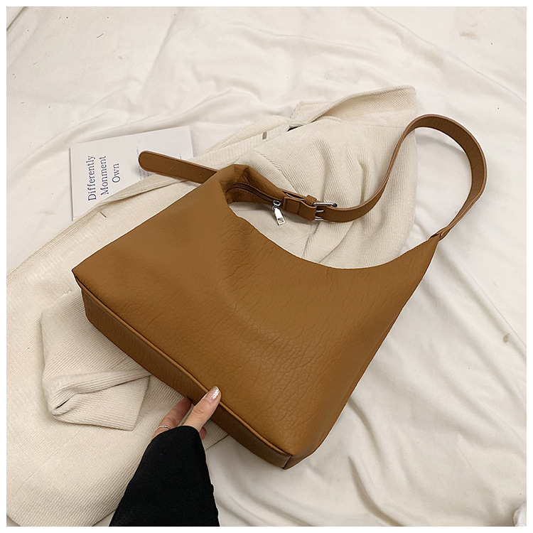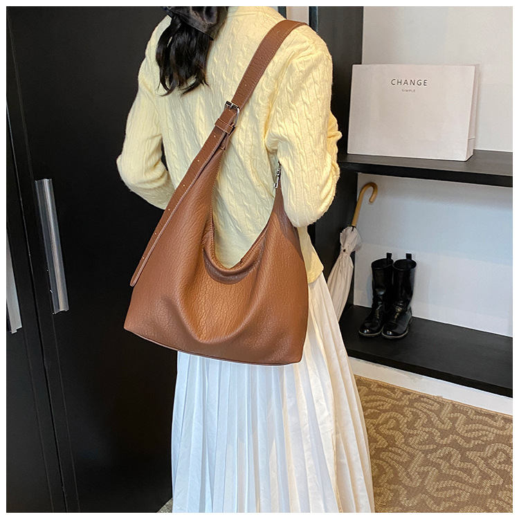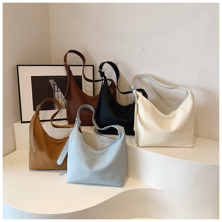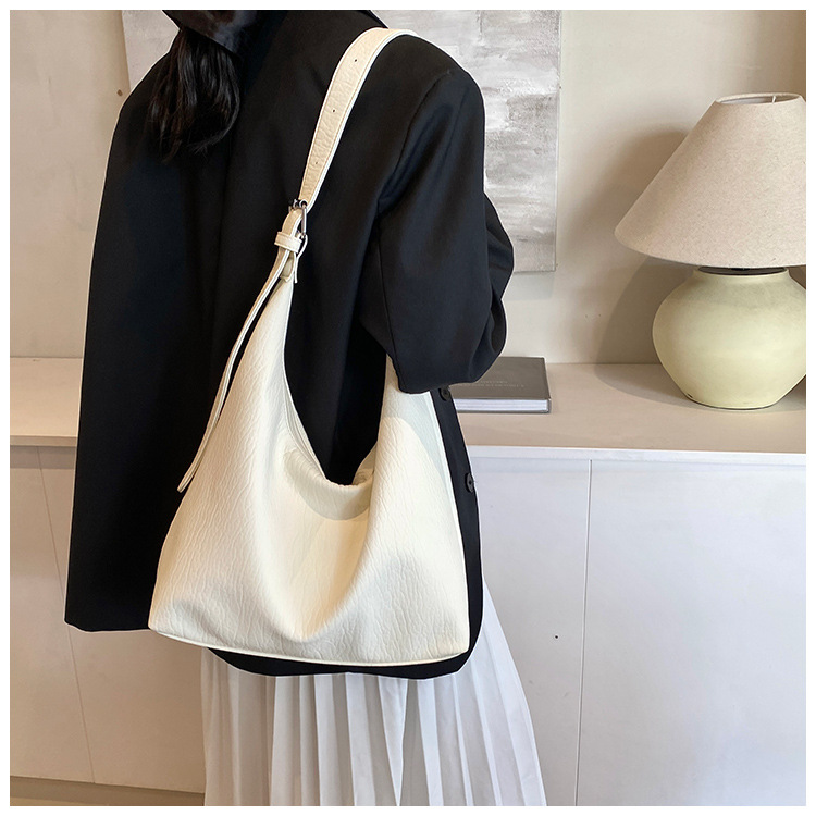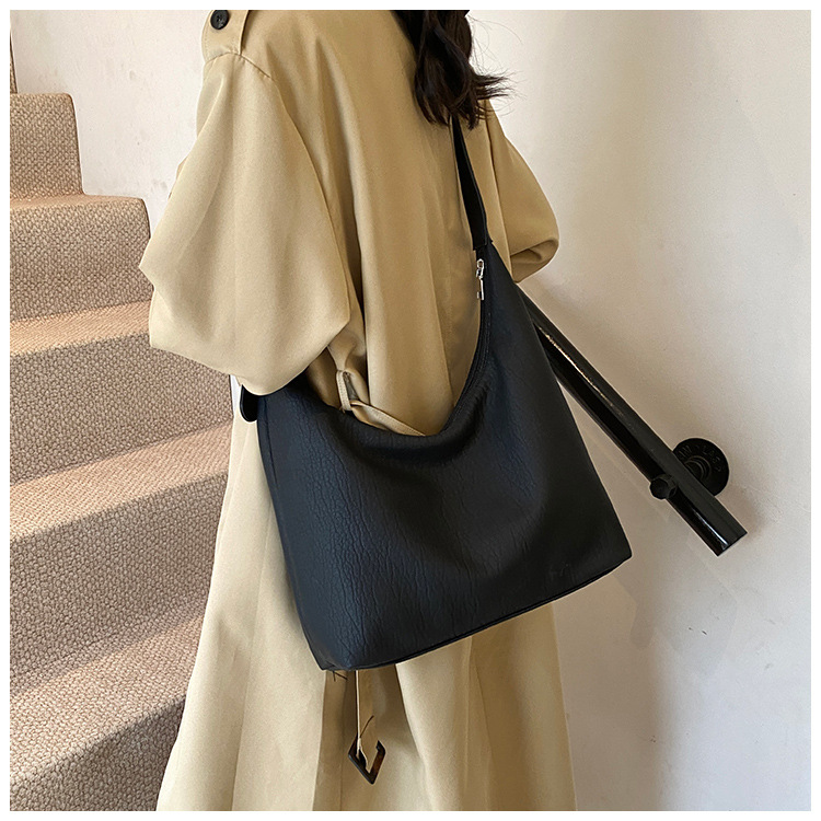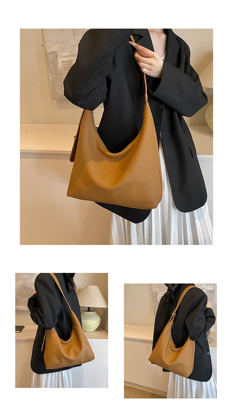 国境を越えたしわシングルショルダーバッグinsシンプルで柔らかいモチモチとしたトートバッグ純色大容量通勤脇下バッグ斜め掛け女性バッグ