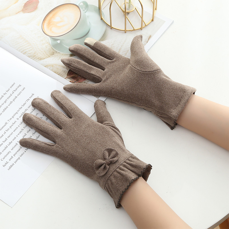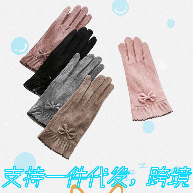 冬季保暖蝴蝶结加绒女士手套百搭可触屏防风防寒骑车户外骑行手套