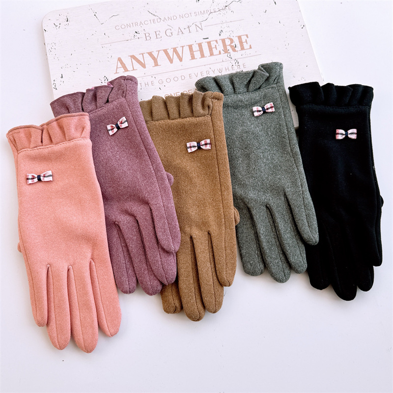 新しい女性の蝶結びの手袋の秋冬のタイプは自転車に乗って防風します。