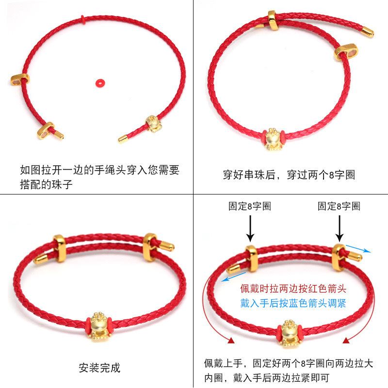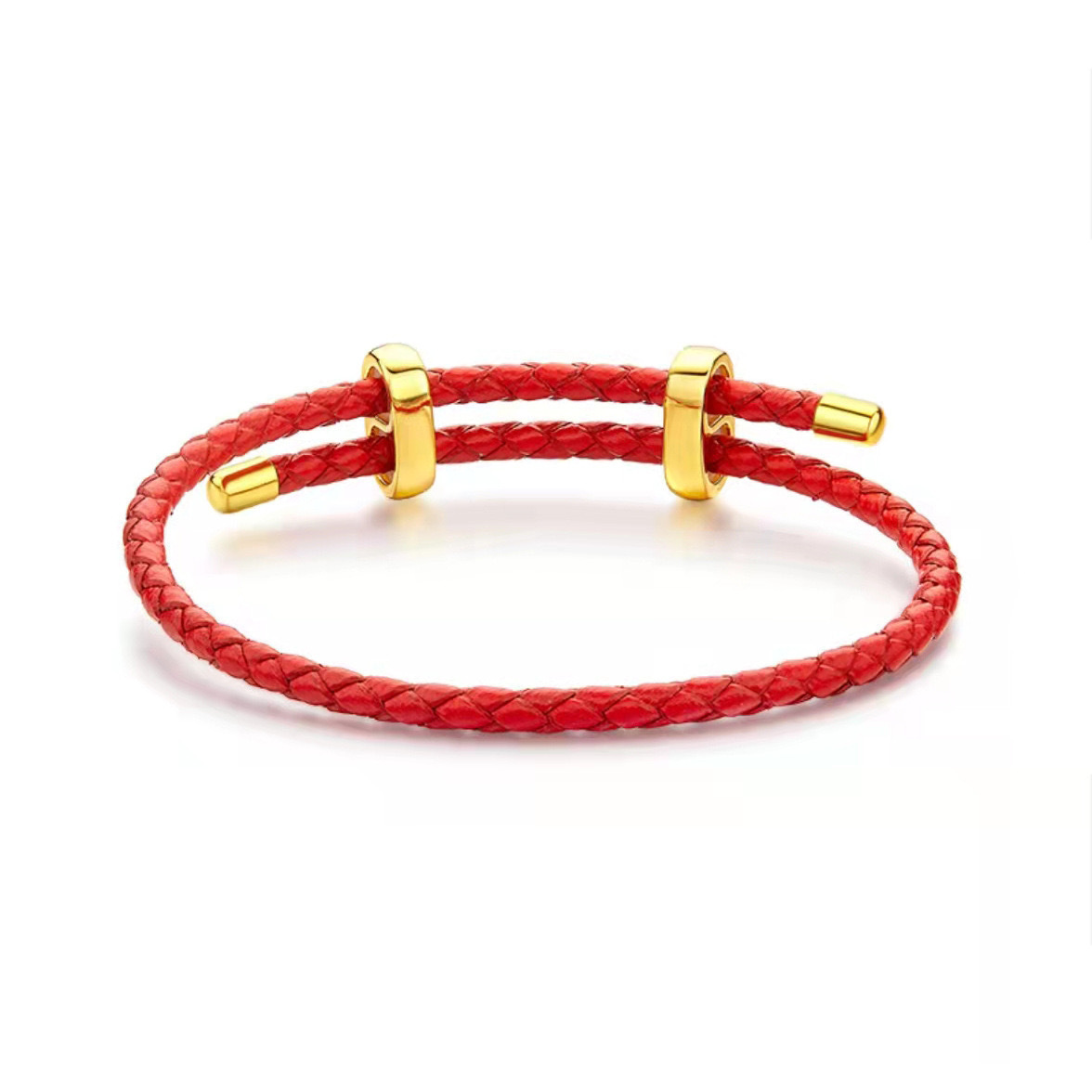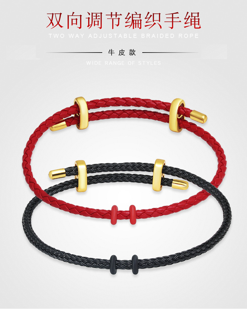 DIYの手編みの細い金のペンダントの掛け縄の男女の手首の革紐の万能な組み合わせは玉の玉の玉の掛け縄を調節することができます。