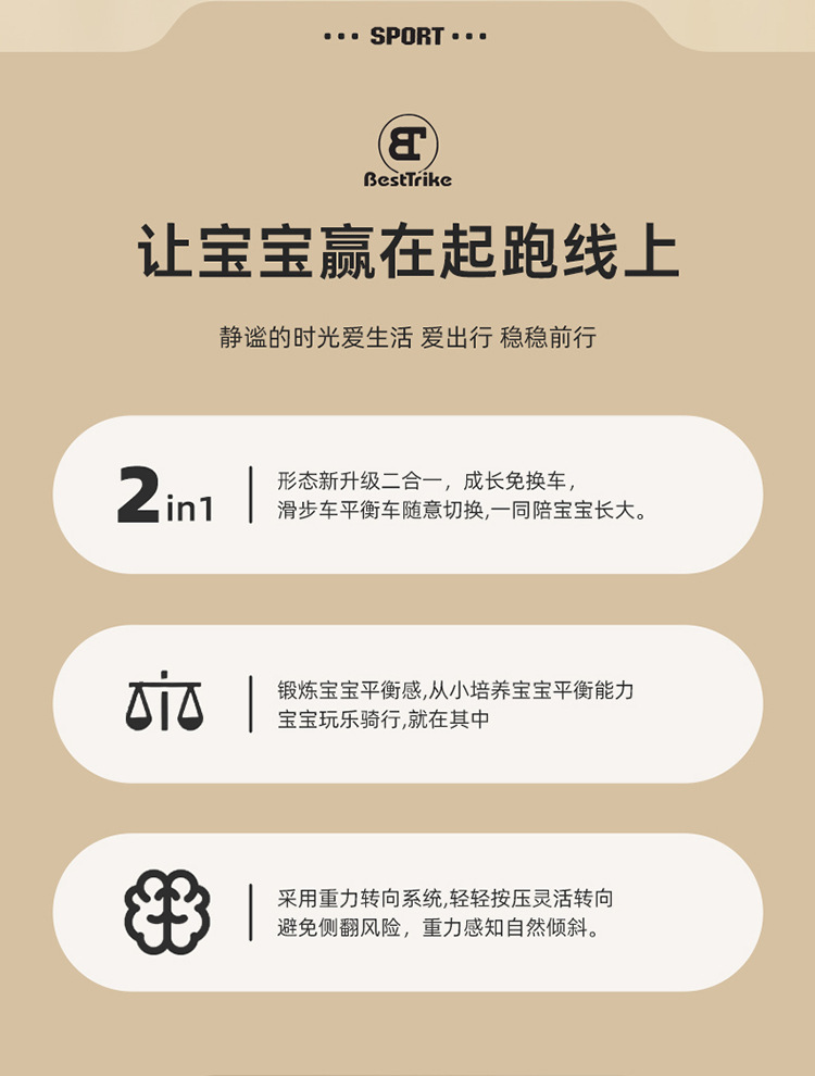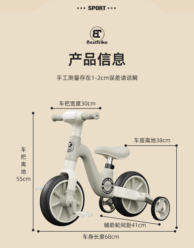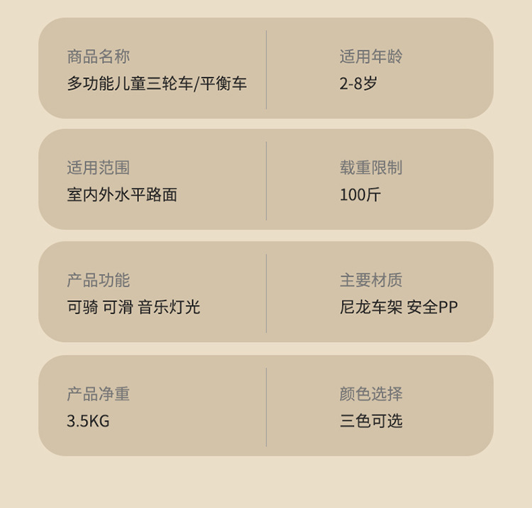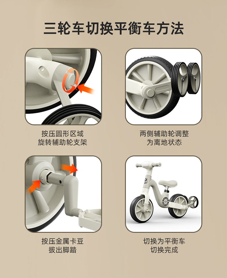 儿童平衡车多功能脚踏三轮车宝宝滑行步二合一带推把自行车滑行车