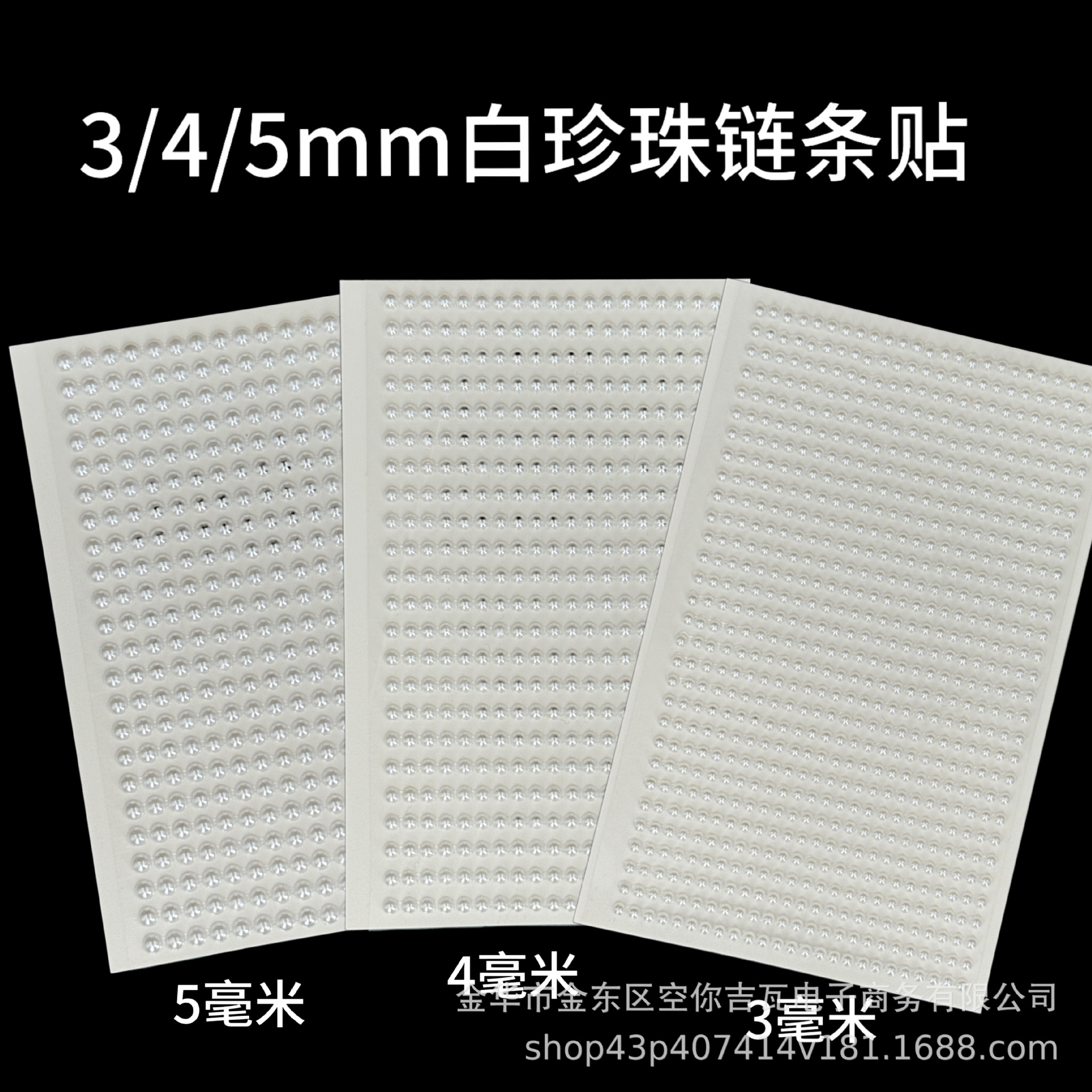 跨境珍珠贴纸345mm半圆立体珍珠链条DIY水钻饰品带背胶车贴钻批发