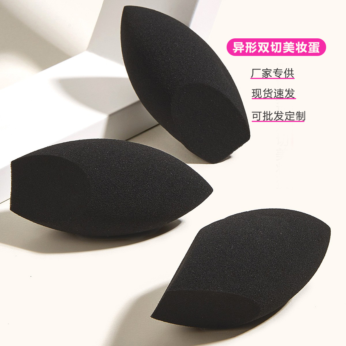黒の特殊な形状のダブルカット美容卵、非ラテックススポンジ、繊細なメイク、パウダーフリー、ウェットおよびドライスポンジ卵メーカー
