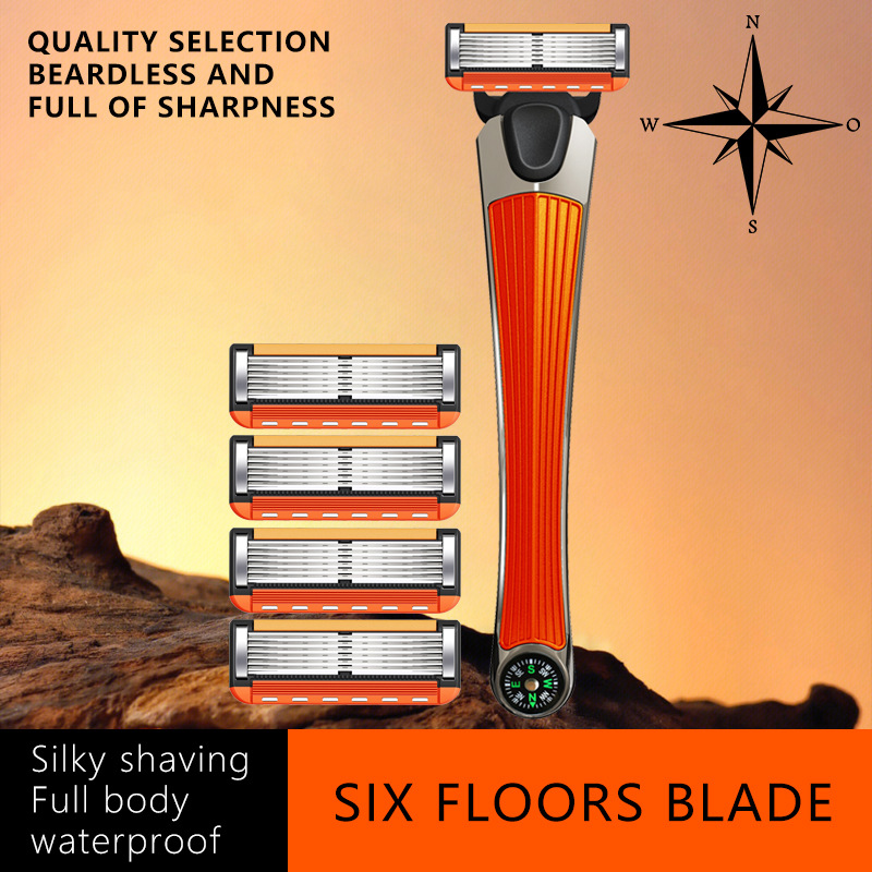 オレンジ色の6層手動かみそり、昔ながらのかみそり、峰速峰陰汎用5層鋭利携帯用