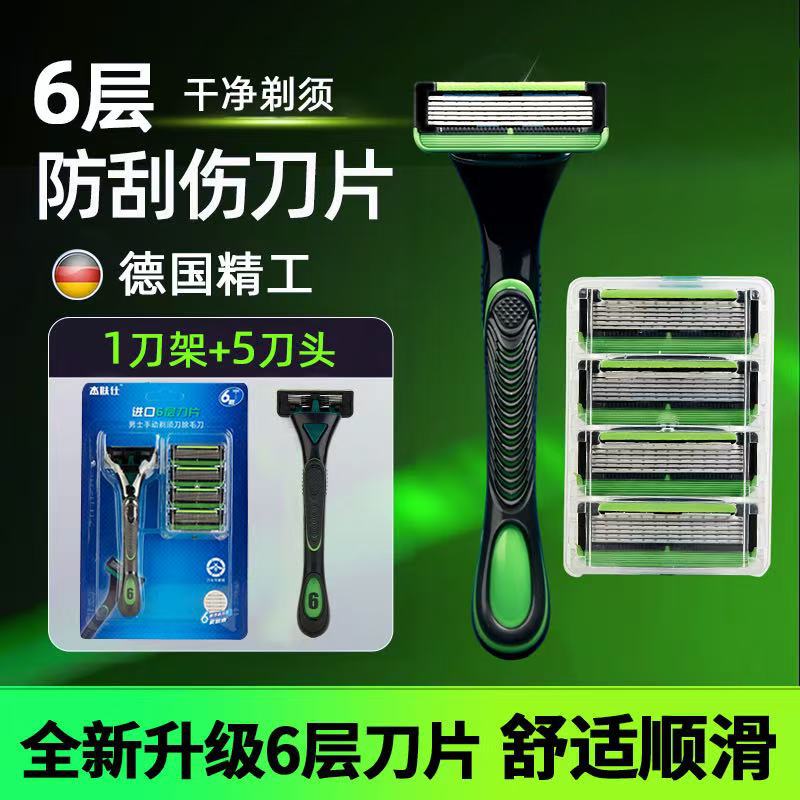 【高品质刀片】润滑液男士6层刀片刮胡刀手动不锈钢刮脸剃须刀