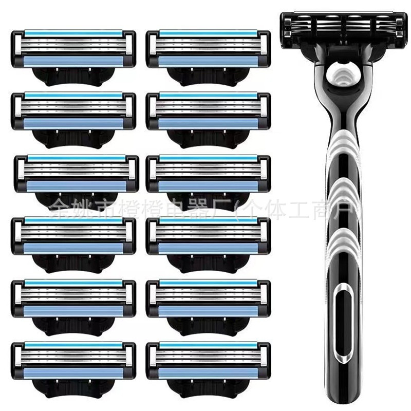 【高品质刀片】黑色6层剃须刀手动可安装市面五层刀架刮胡刀