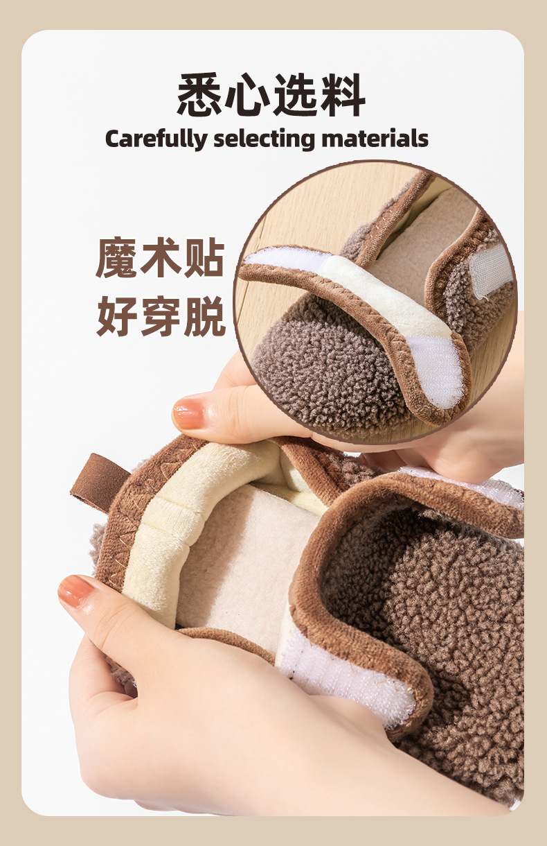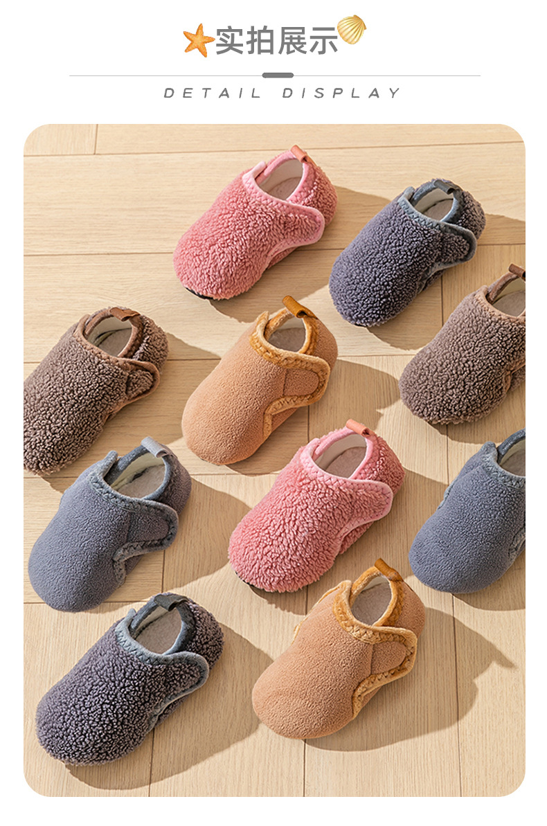冬季儿童棉拖鞋男女童保暖防滑加绒魔术贴包跟中小童宝宝外穿棉鞋