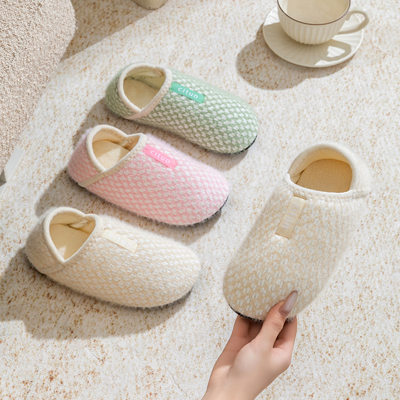 秋冬新品厚底家居棉拖鞋纯色月子鞋情侣针织拖鞋舒适地板家居鞋