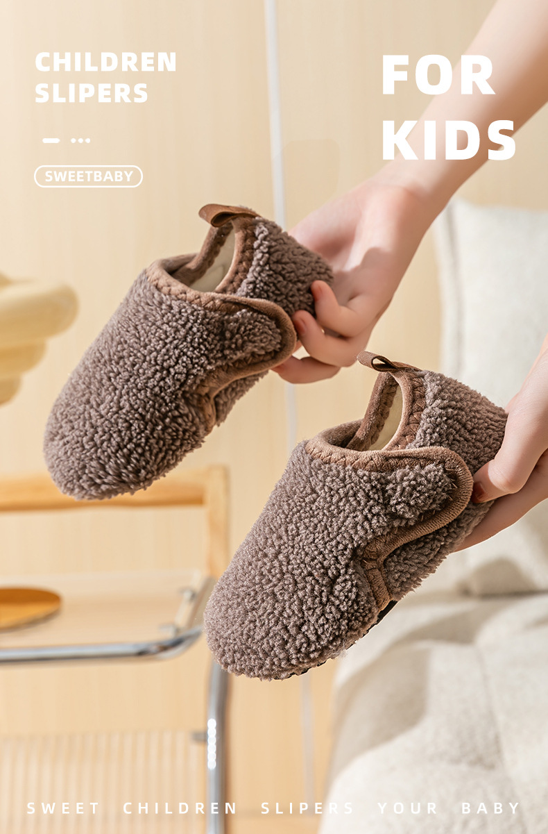 子供用羊毛風ベビーホームスリッパ 秋冬 室内用幼児用スリッパ 子供用くるぶし付きスリッパ