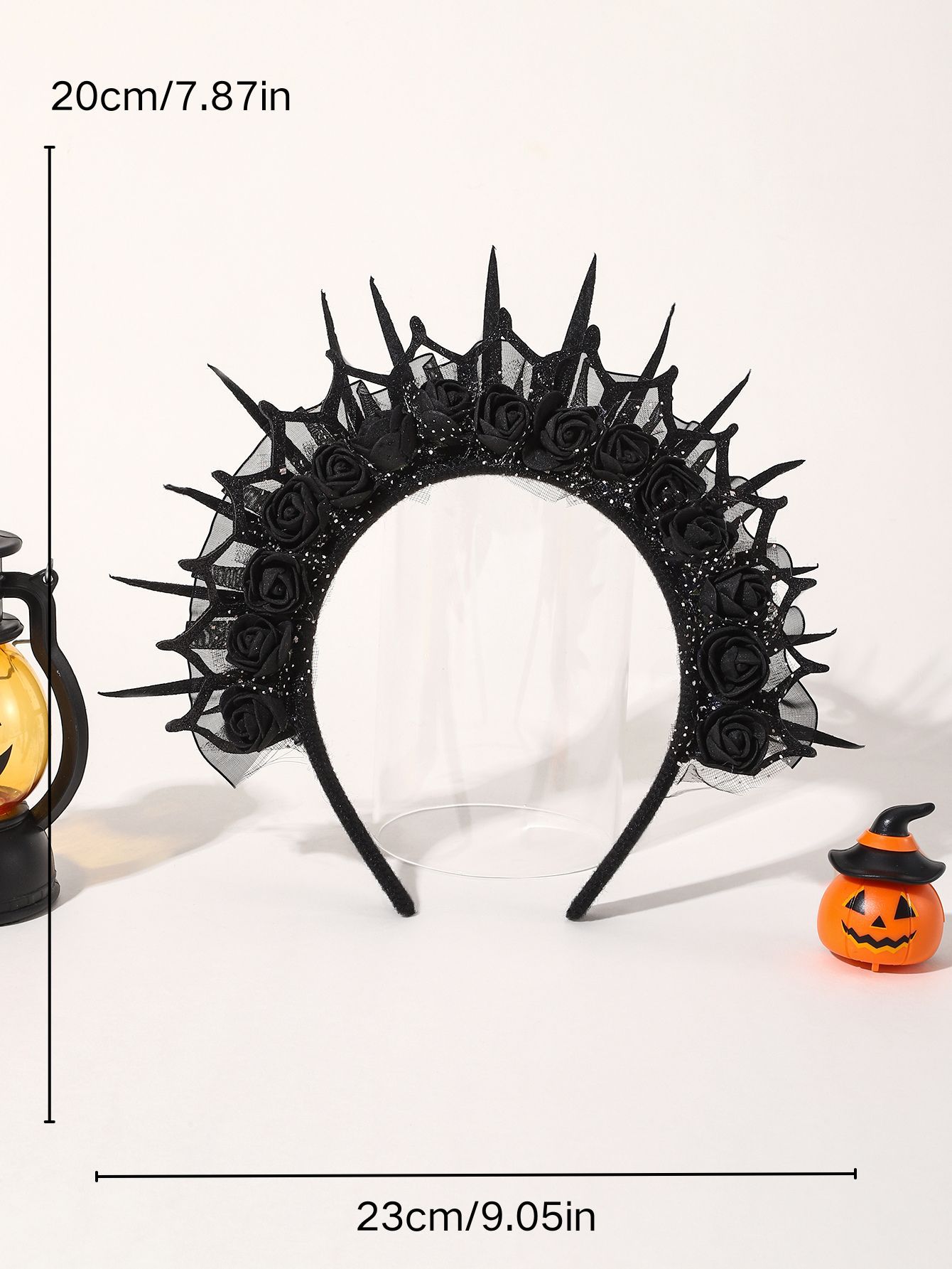 暗黒の王冠の花の魔女の頭飾りパーティーハロウィーンのカチューシャパーティーの写真は悪魔のカチューシャの女性の髪飾りを責めます。