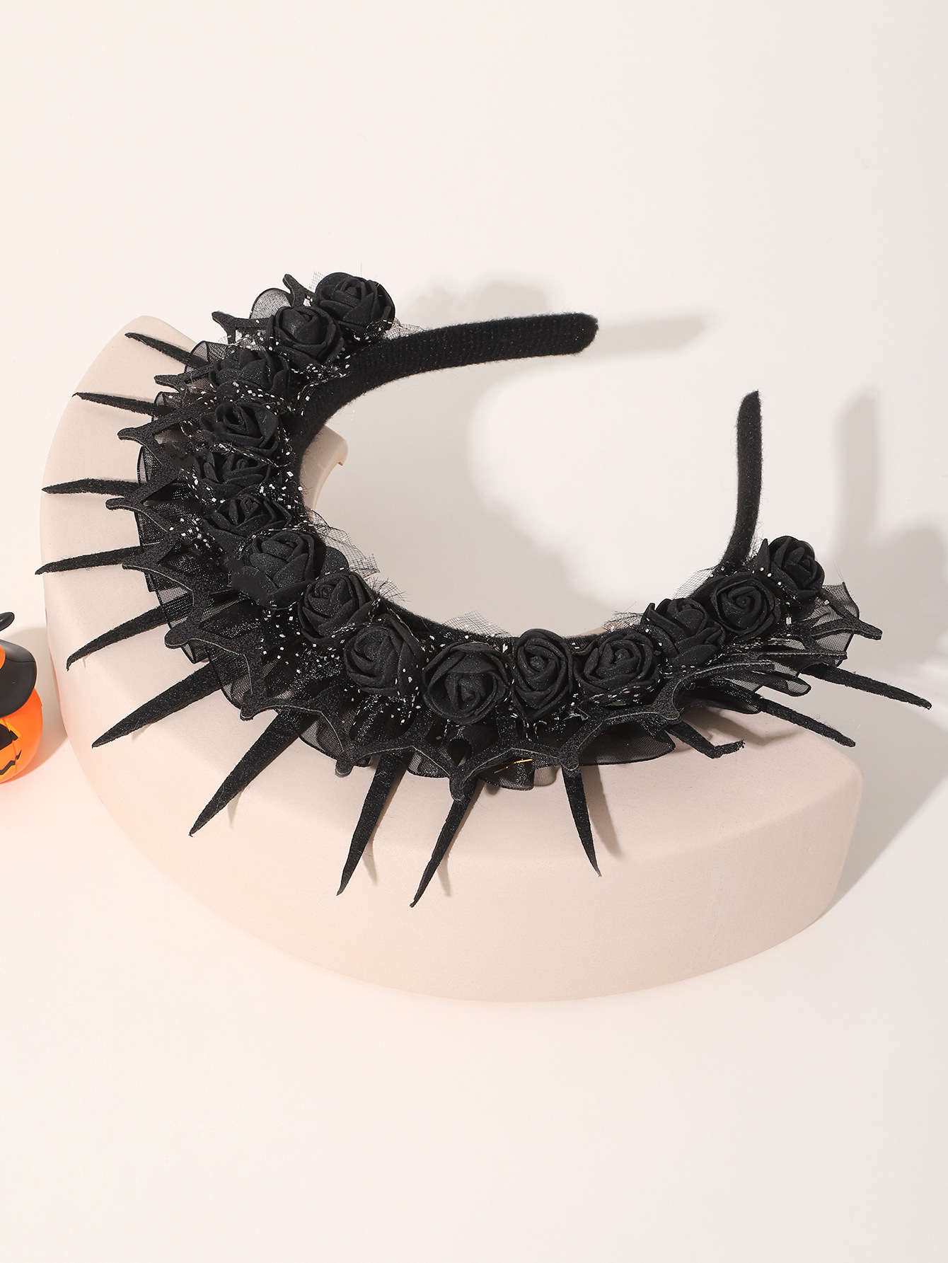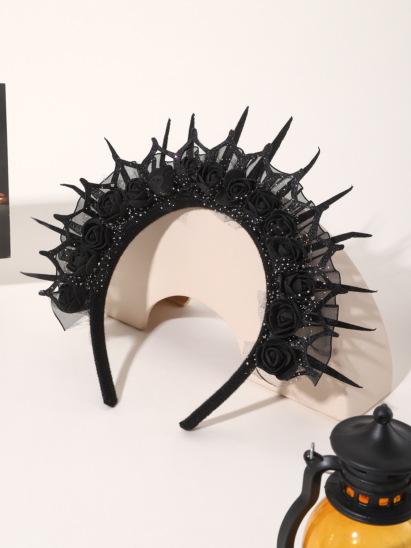 黒いバラのレースのクラウンのカチューシャのハロウィーンの暗い髪飾りの女王の祝日の装いの頭飾りの甘いクールな道具のヘアピン