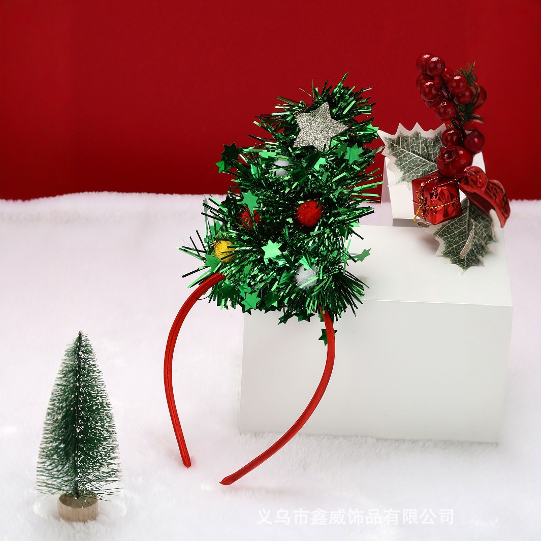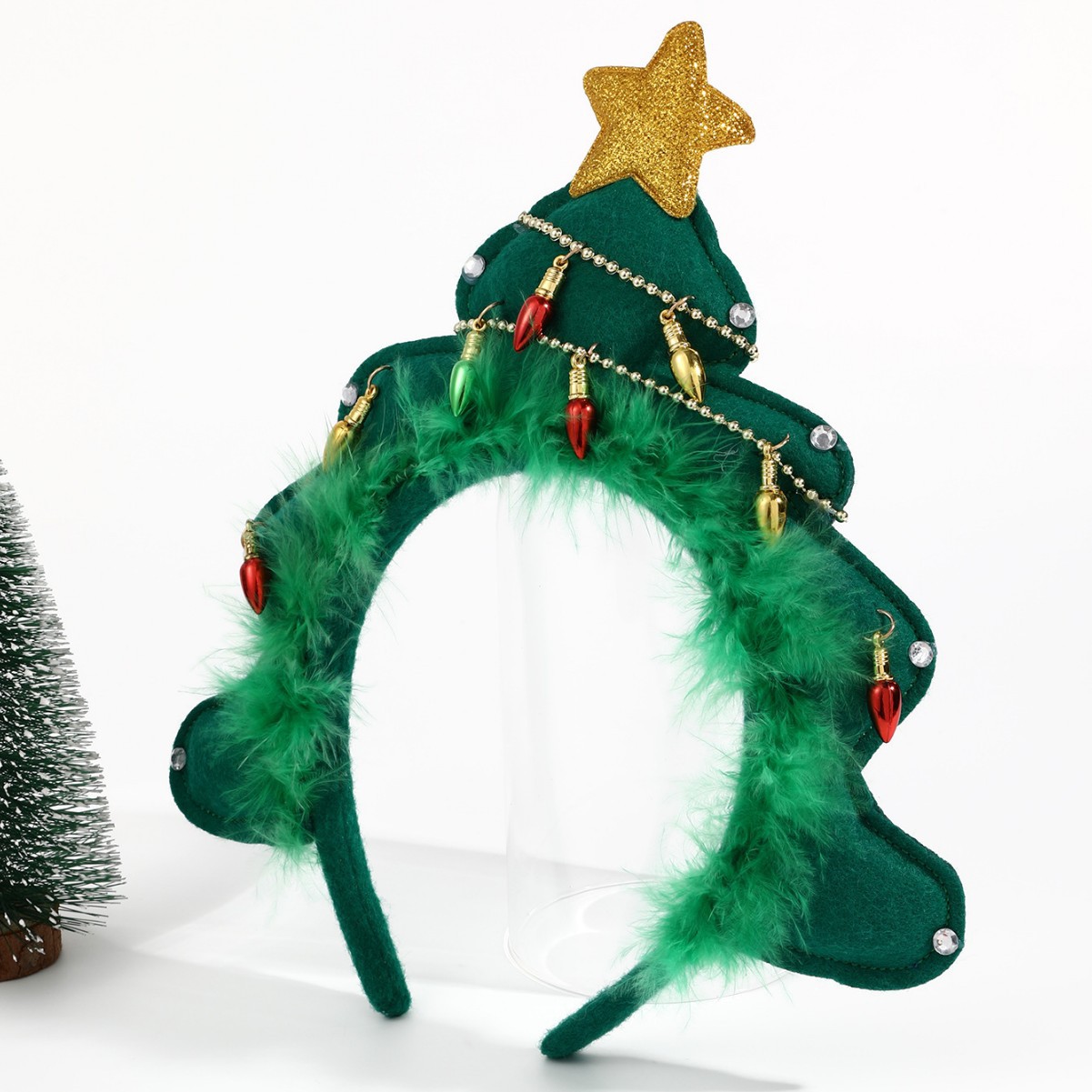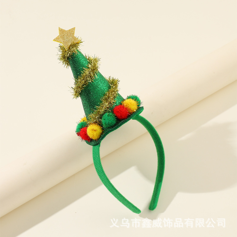 クロスボーダークリスマスゴールドカラーストリップホリデードレスアップクリスマスツリーベルファーボール五芒星ヘッドバンドヘアアクセサリーヘアフープ