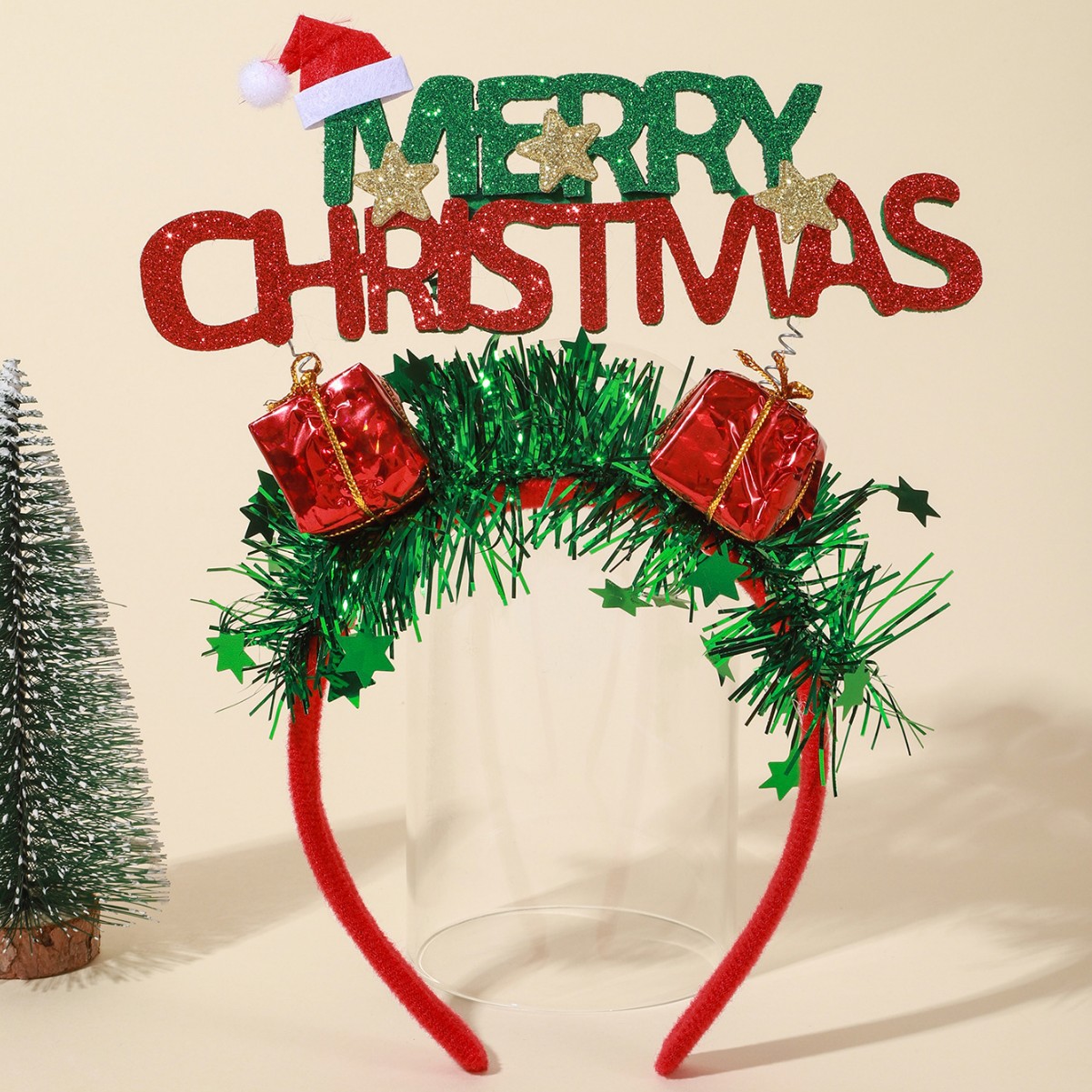 クリスマス MERRYCHRISTMAS レターギフトボックス グリーンゴールドリボン クリスマス帽子 ホリデーヘアフープ ヘッドバンド