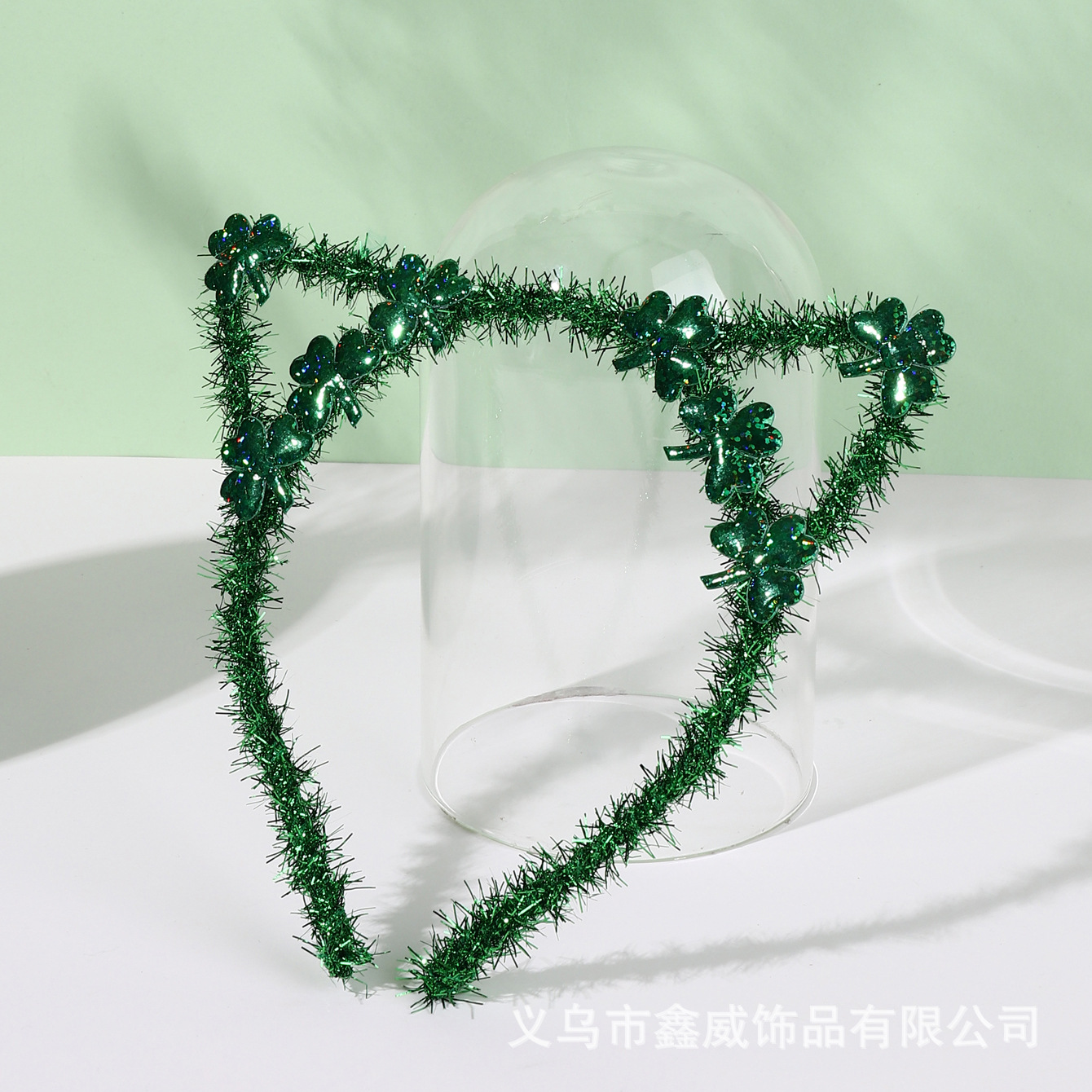 国境を越えた祝日のアクセサリーグリーン金糸レーザークローバー猫耳カチューシャ聖パトリック祭髪飾りアイルランド