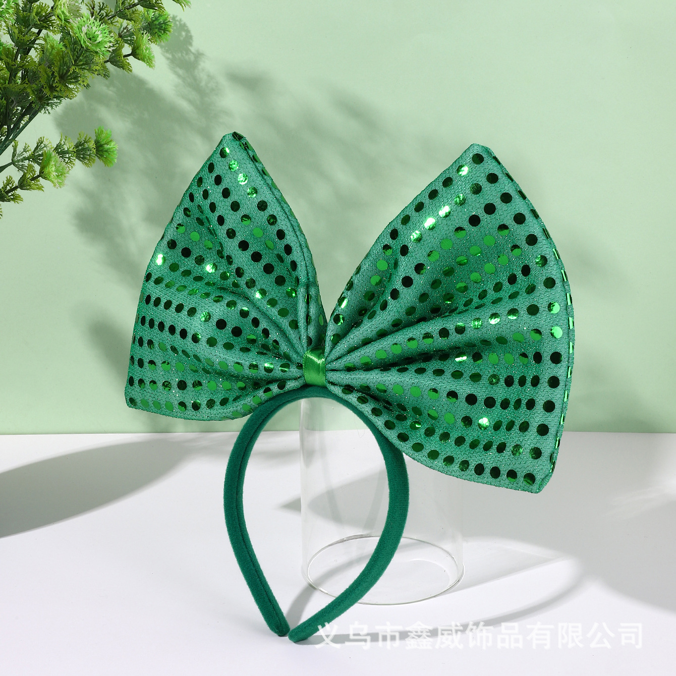 クロスボーダーの祝日のアクセサリーアイルランドの緑のスパンコールの大きい蝶結びのカチューシャの聖パトリックの日の髪飾りアイルランド