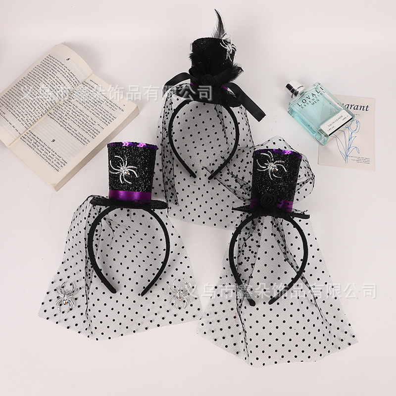 新しいハロウィーンのベールのカチューシャのパーティーの女性の魔女の帽子のカチューシャの装飾用品の蜘蛛の巣の魔女の帽子の個性のカチューシャ