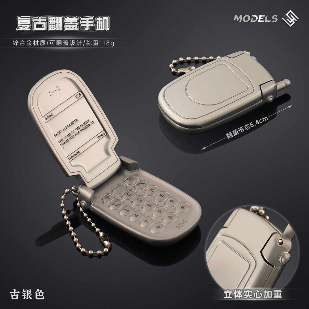 外贸货源 迷你挂件复古翻盖手机合金钥匙扣金属收藏挂饰装饰周边