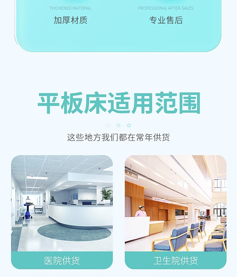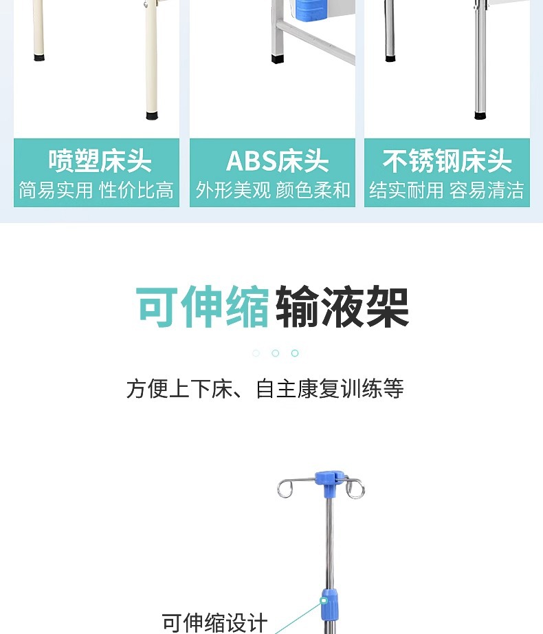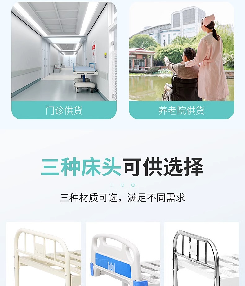 診療所の診察台、病院用の点滴台、医療用ベッド、家庭用介護ベッド、普通のフラットベッド、ガードレール付き