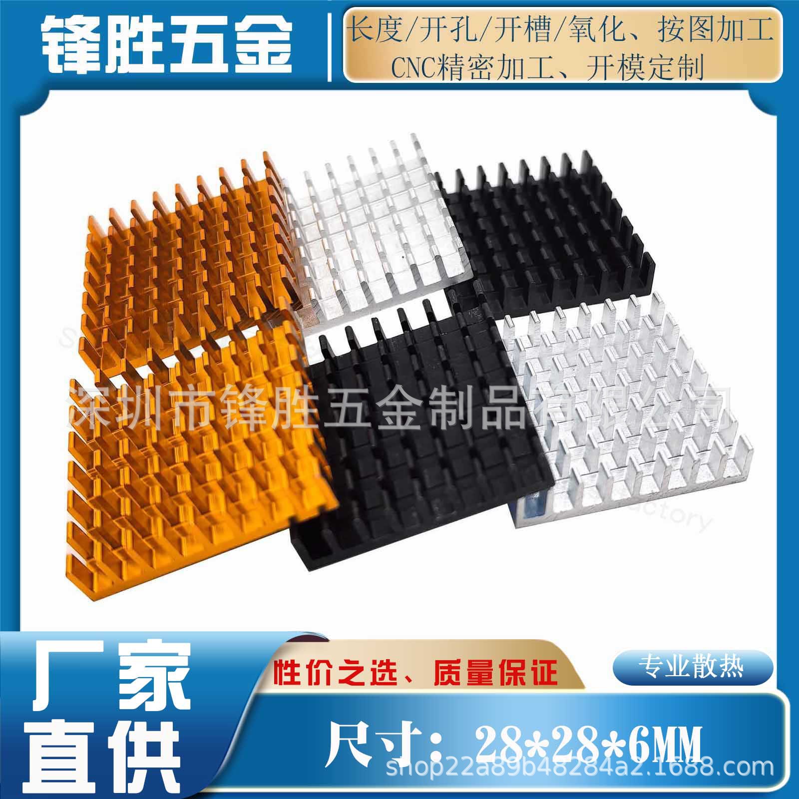 アルミ形材ヒートシンク28*28*6mm電子マザーボードICチップ放熱器バック付きメーカー直販