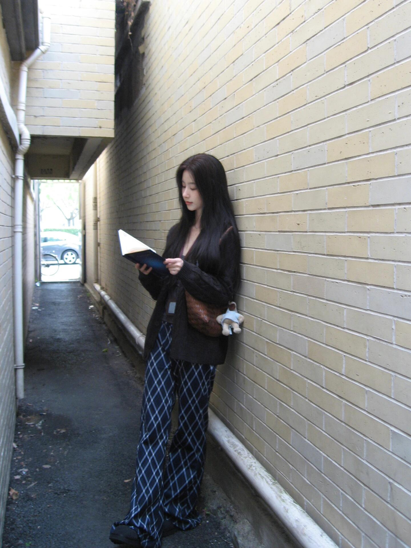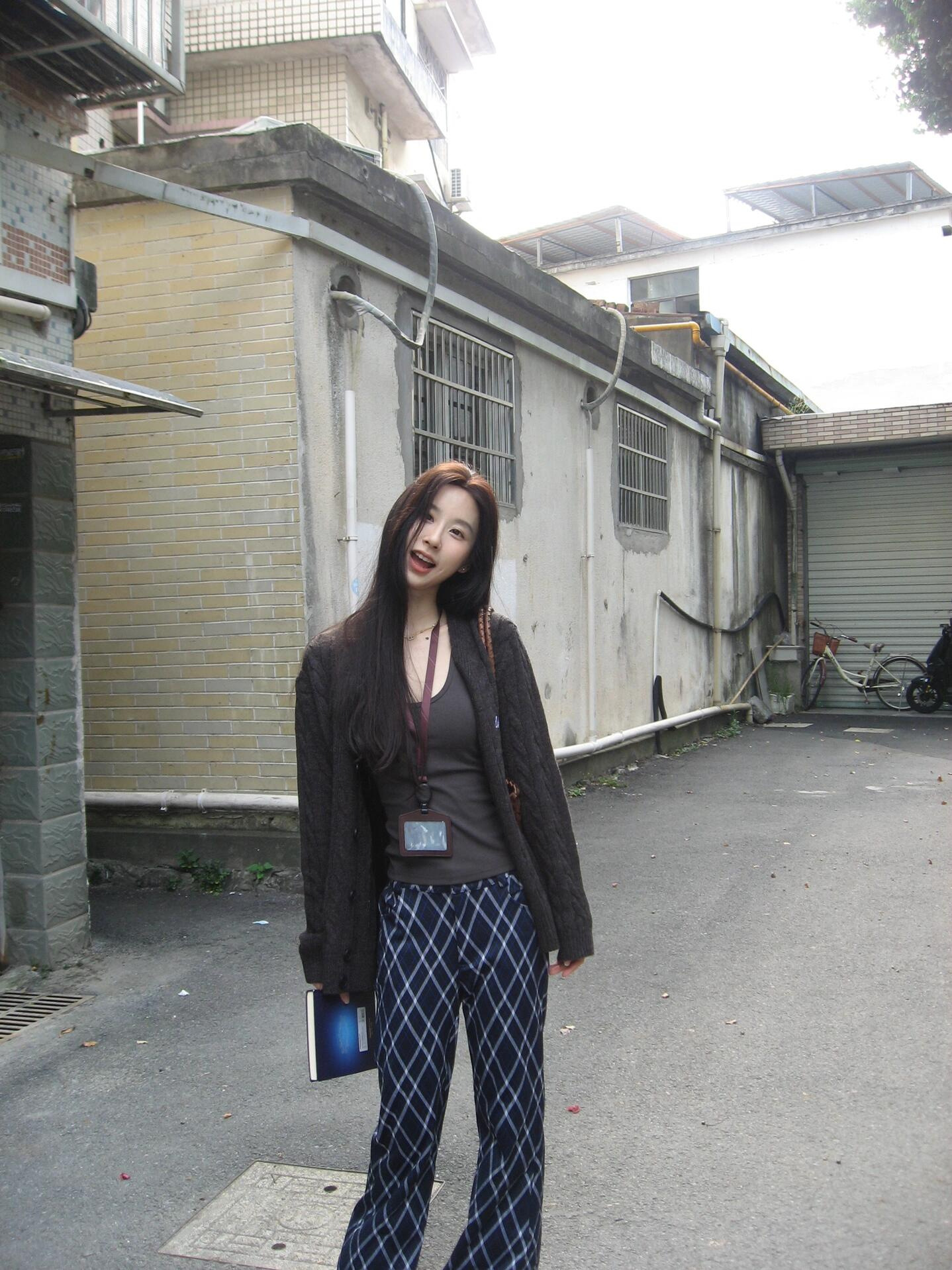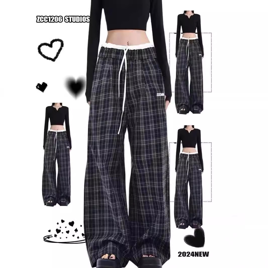 趙露思同モデルの格子縞のズボンの女性2025の新型の夏のたるみ感の怠惰な風の高い腰のゆったりした感じのカジュアルなズボン