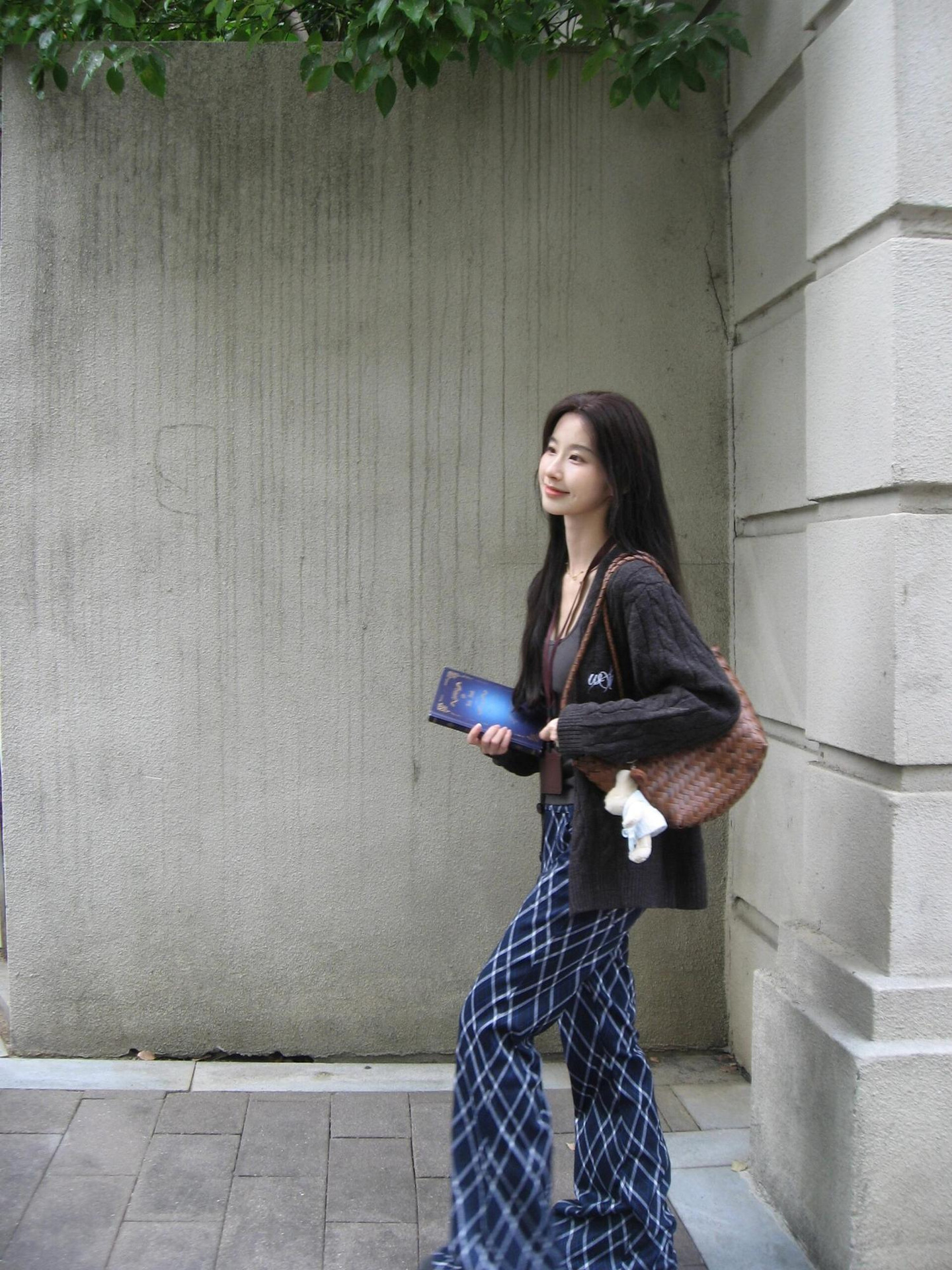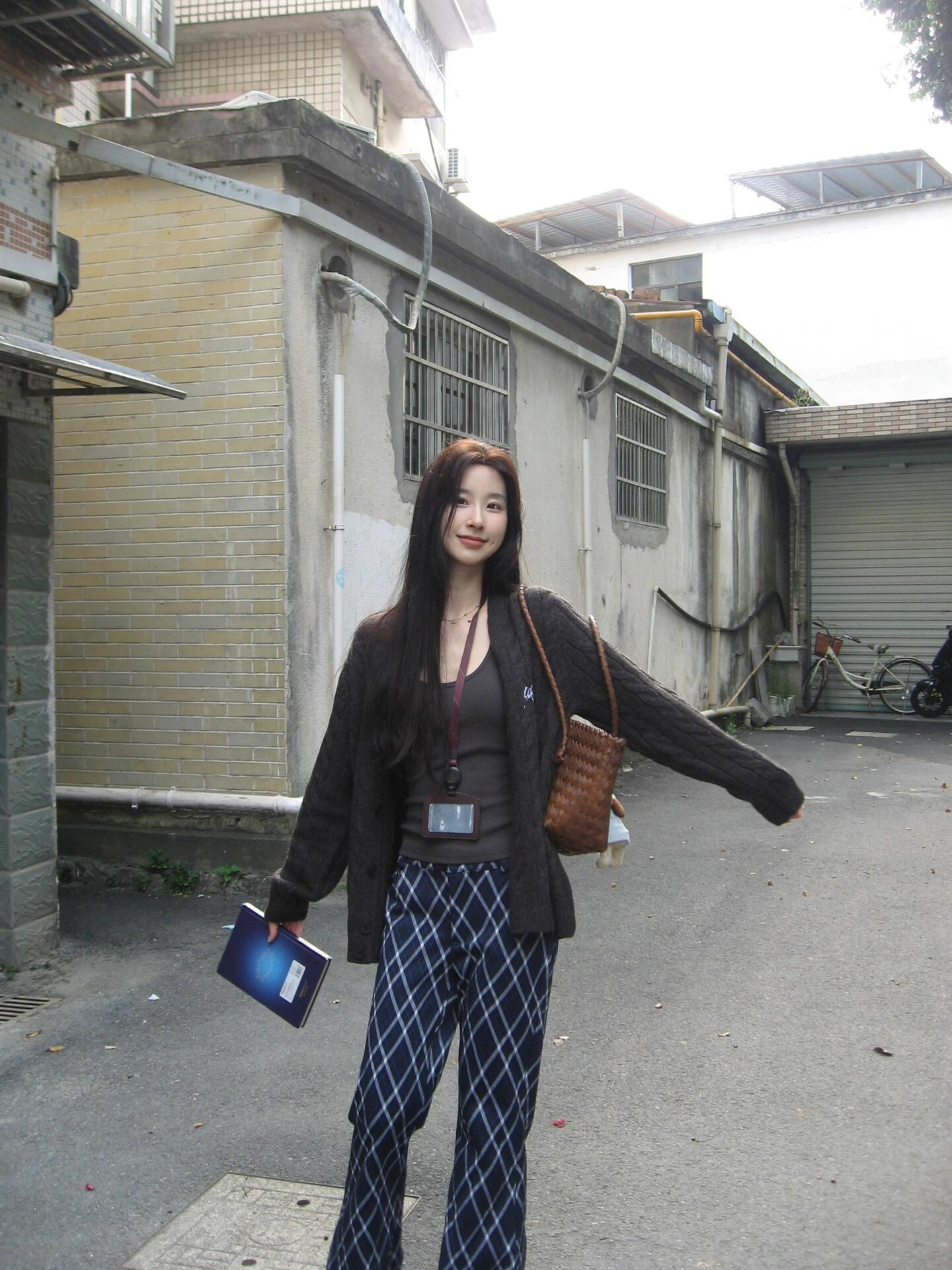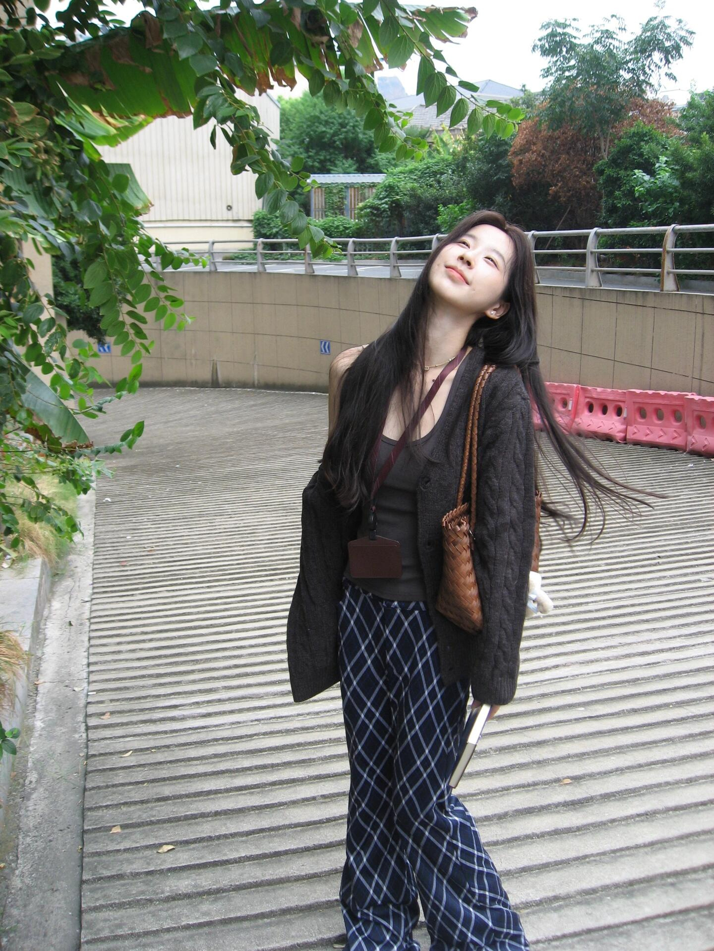 趙露思同モデルの格子縞のズボンの女性2025の新型の夏のたるみ感の怠惰な風の高い腰のゆったりした感じのカジュアルなズボン