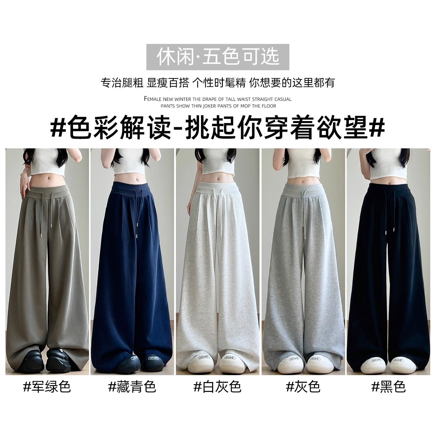美式灰色休闲阔腿裤女秋季2025新款低腰宽松显瘦休闲直筒运动卫裤