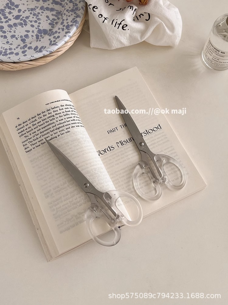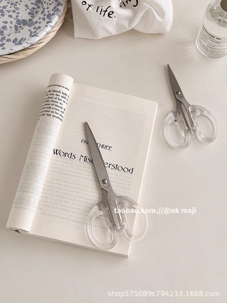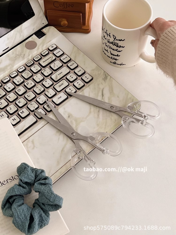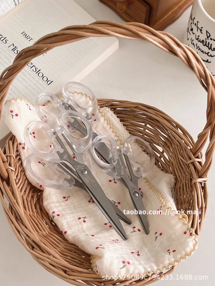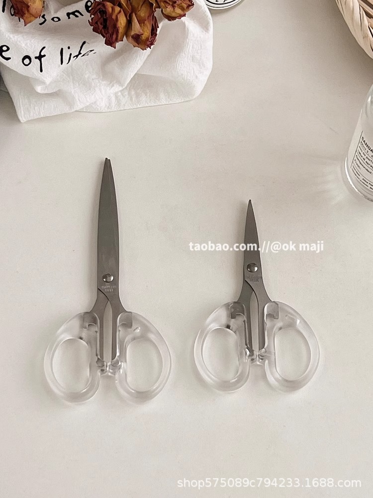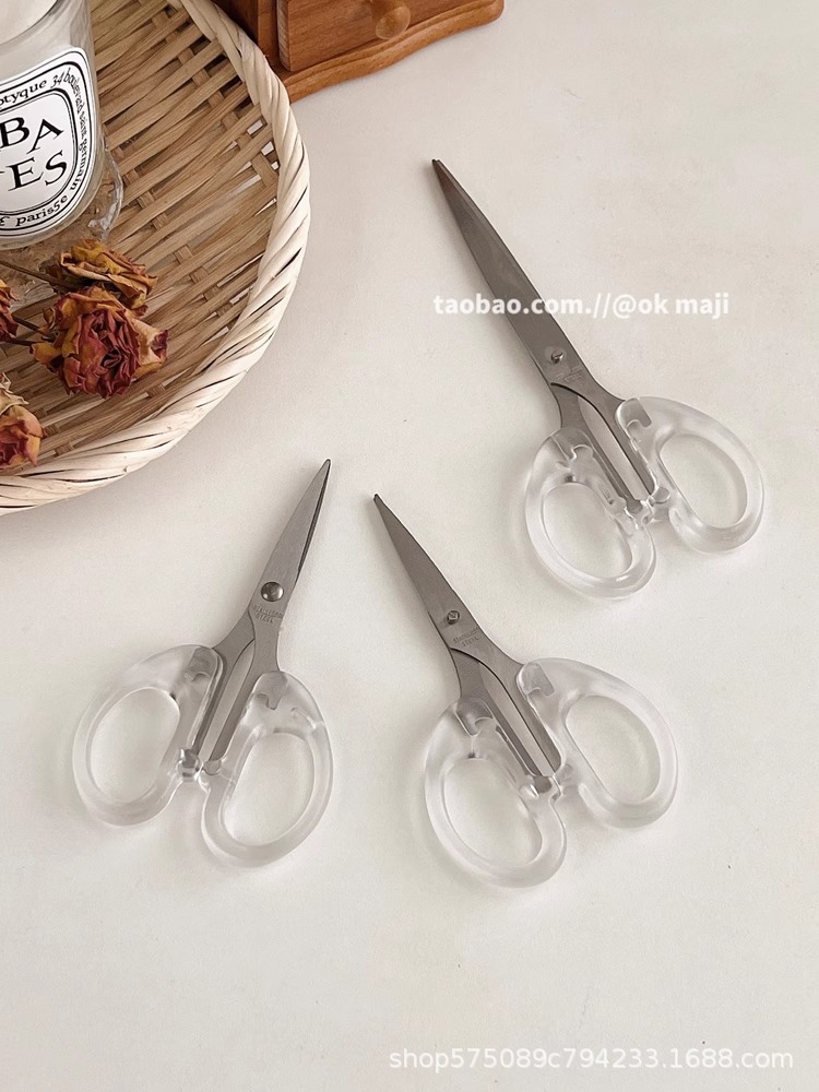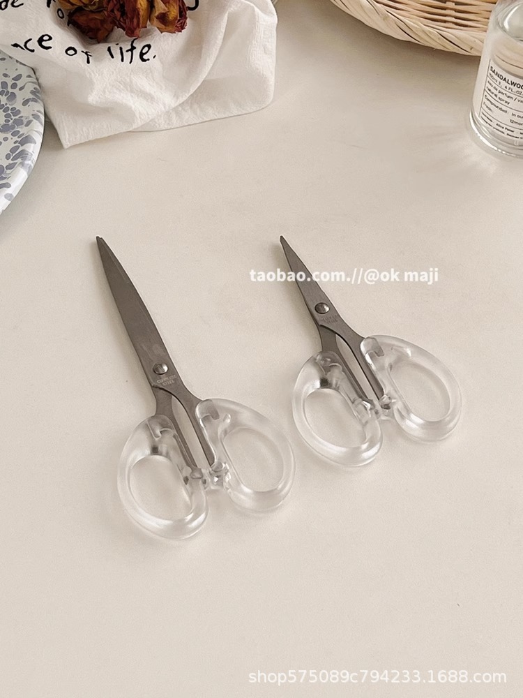 Ok maji韓国ins風透明ハンドル金小ハサミ日常用ステンレス文房具切り学生はさみ