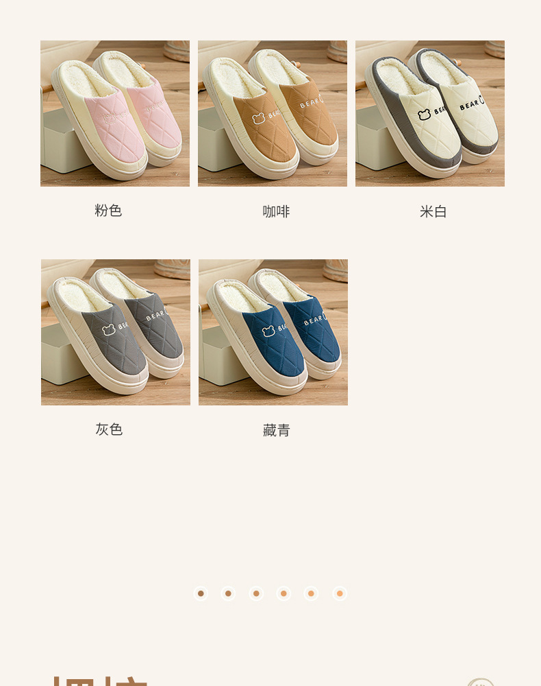 秋冬の新型メッシュ男性綿スリッパ冬の室内防水滑り止めカップル保温ダウン綿引き女