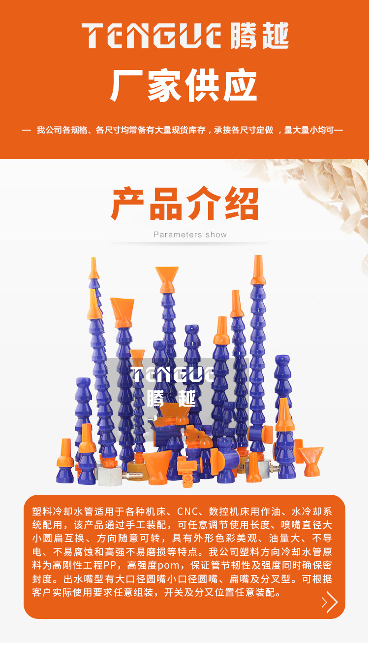 カスタマイズされたプラスチック冷却管、内管付きで水漏れを防ぎ、工作機械用万方向竹節管冷却水パイプ、万方向調整可能