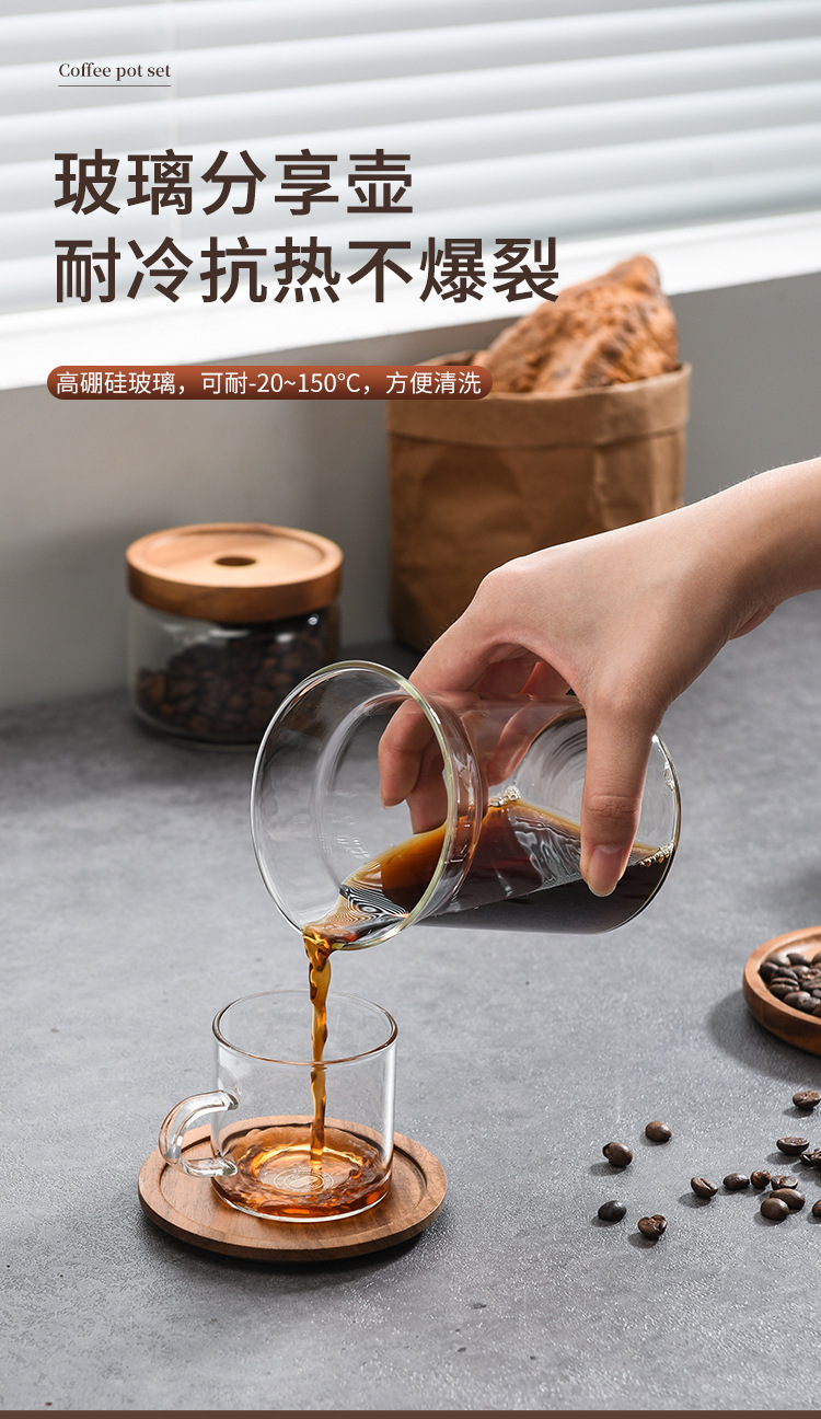 国境を越えたコーヒーポットセット濾過カップガラスコーヒー分享カップ