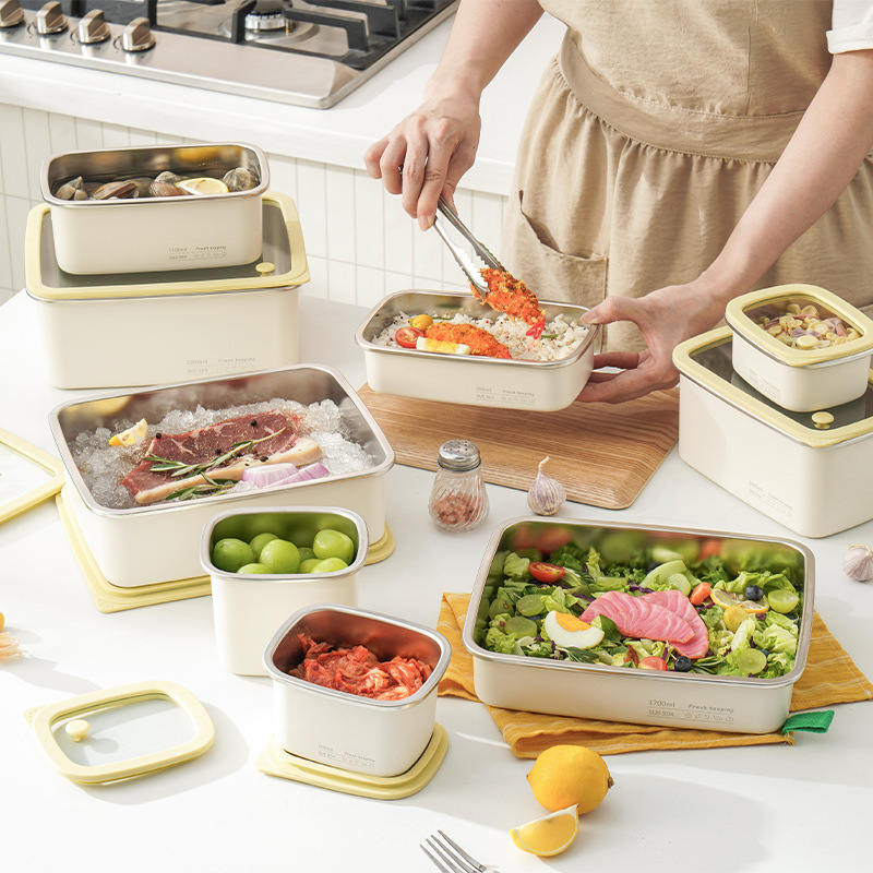 防爆玻璃盖密封保鲜盒304不锈钢冷冻冷藏盒燕麦盒 微波炉加热饭盒