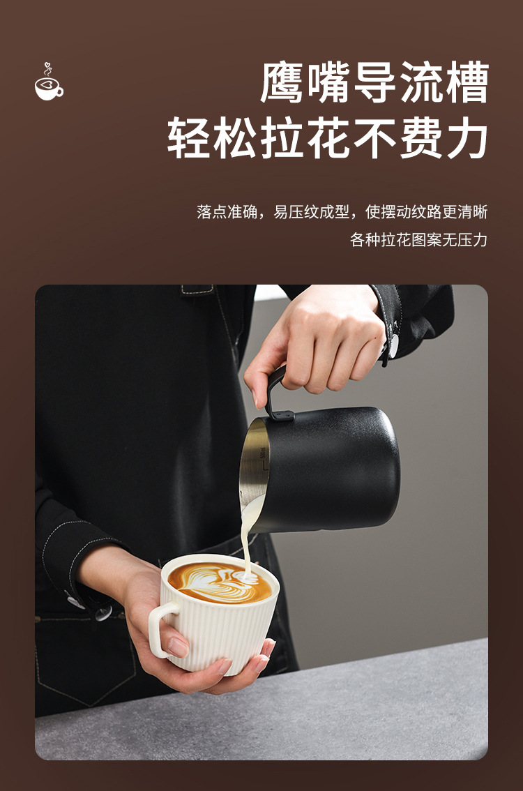 コーヒーラテアート用カップ、尖った注ぎ口のポット、ラテアート用ミルクフォームカップ、イタリアンミルクフォームカップ、ステンレス製斜め注ぎ口ミルクフォームカップ、食品グレードのステンレス製