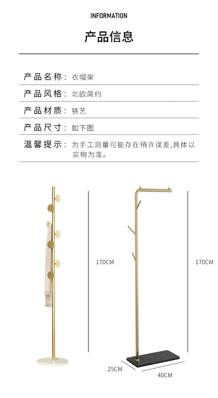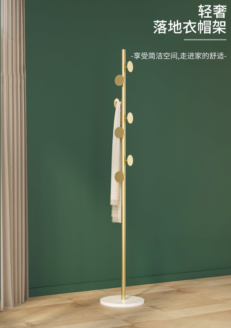 家庭用玄関フロアスタンド型コートラック、モダンでシンプルな衣類ラック、省スペースな岩板メタル収納ラック