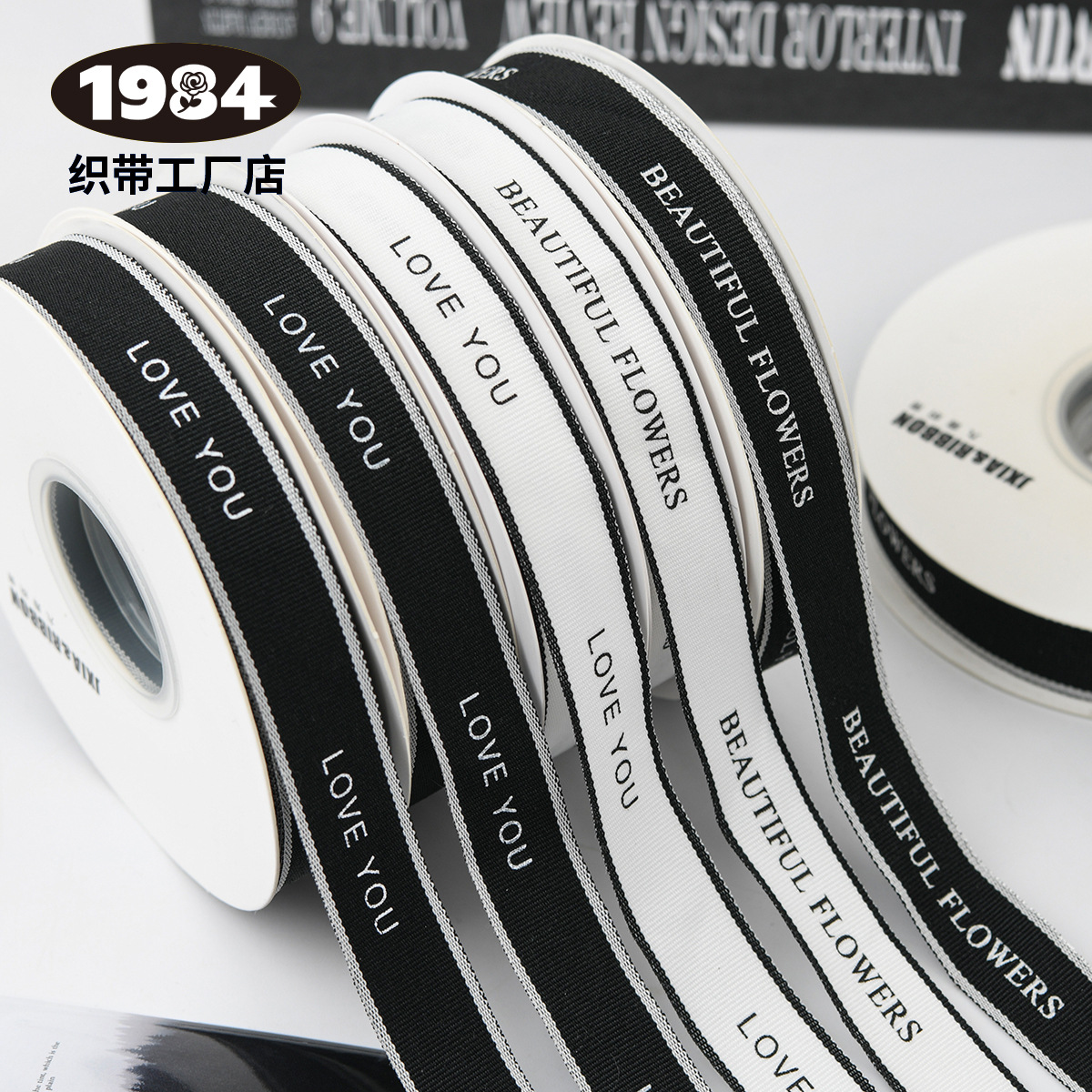 七夕のバレンタインデー用の英語文字リボン、包装リボン、蝶結び、花、リボン模様のリボン、ギフトボックス包装リボン