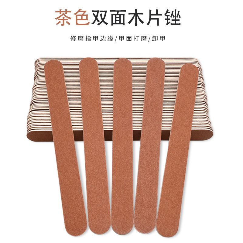 ネイルアートの砂条茶色の木の皮やすりの両面の木の片をこすります。