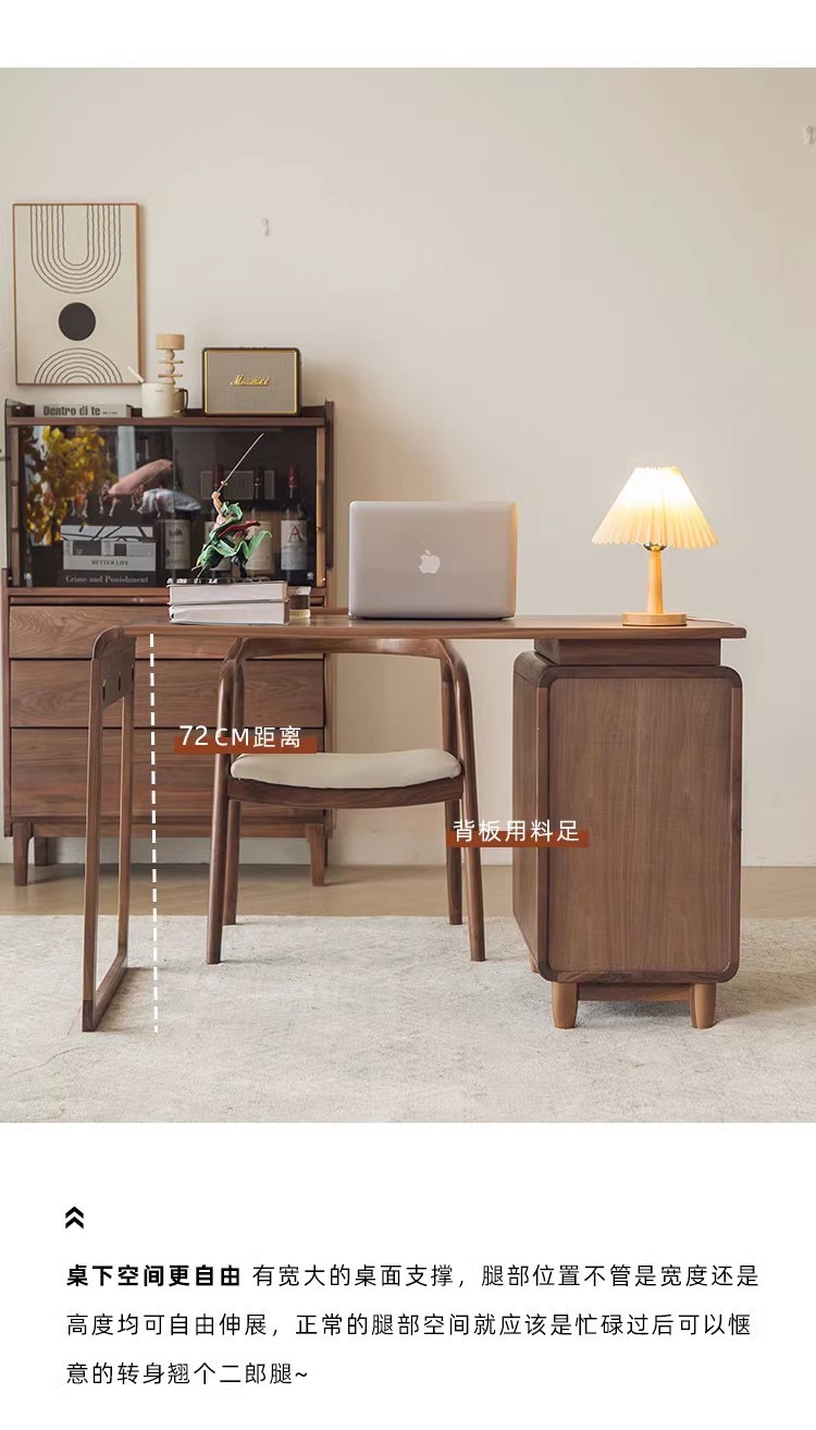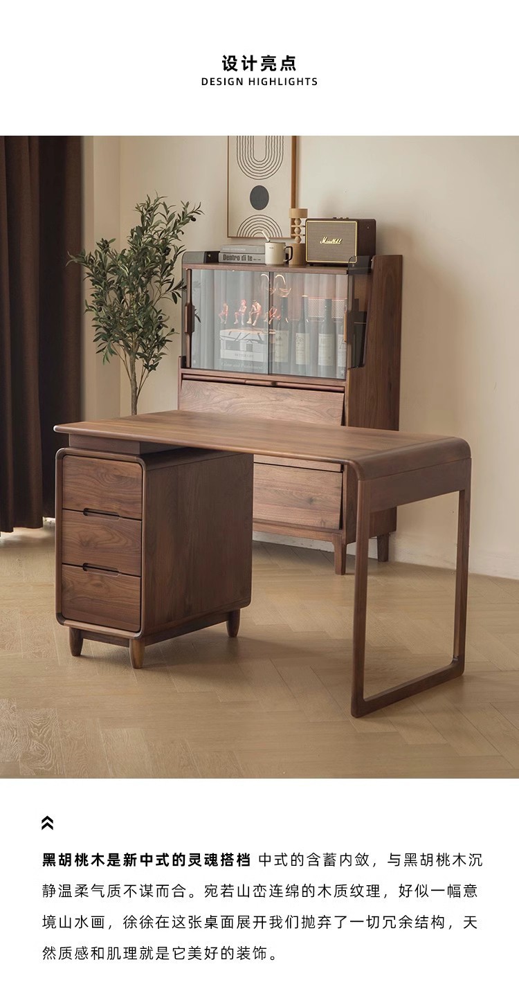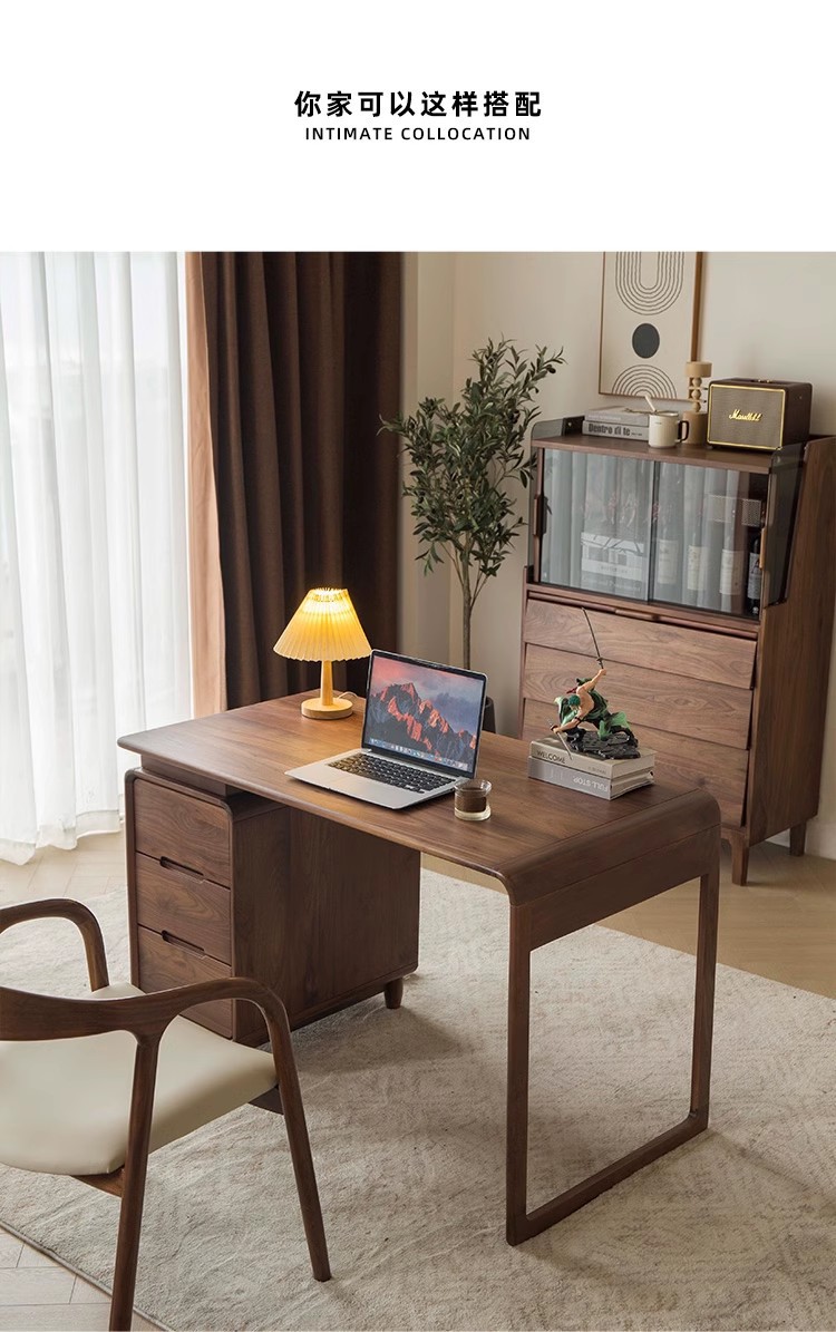 北欧全実木黒胡桃木机日本式シンプル現代桜木オフィスコンピュータデスク