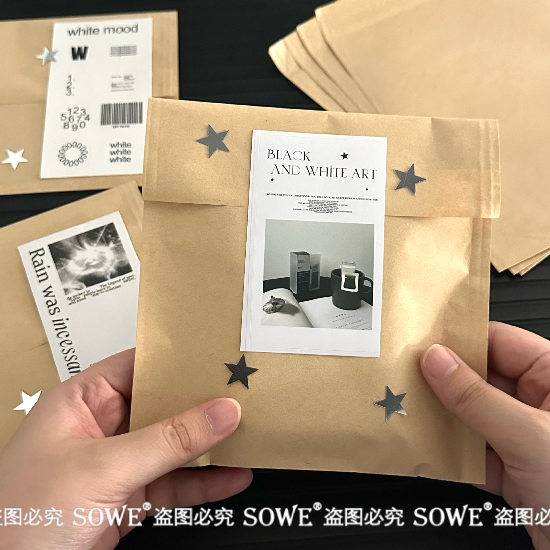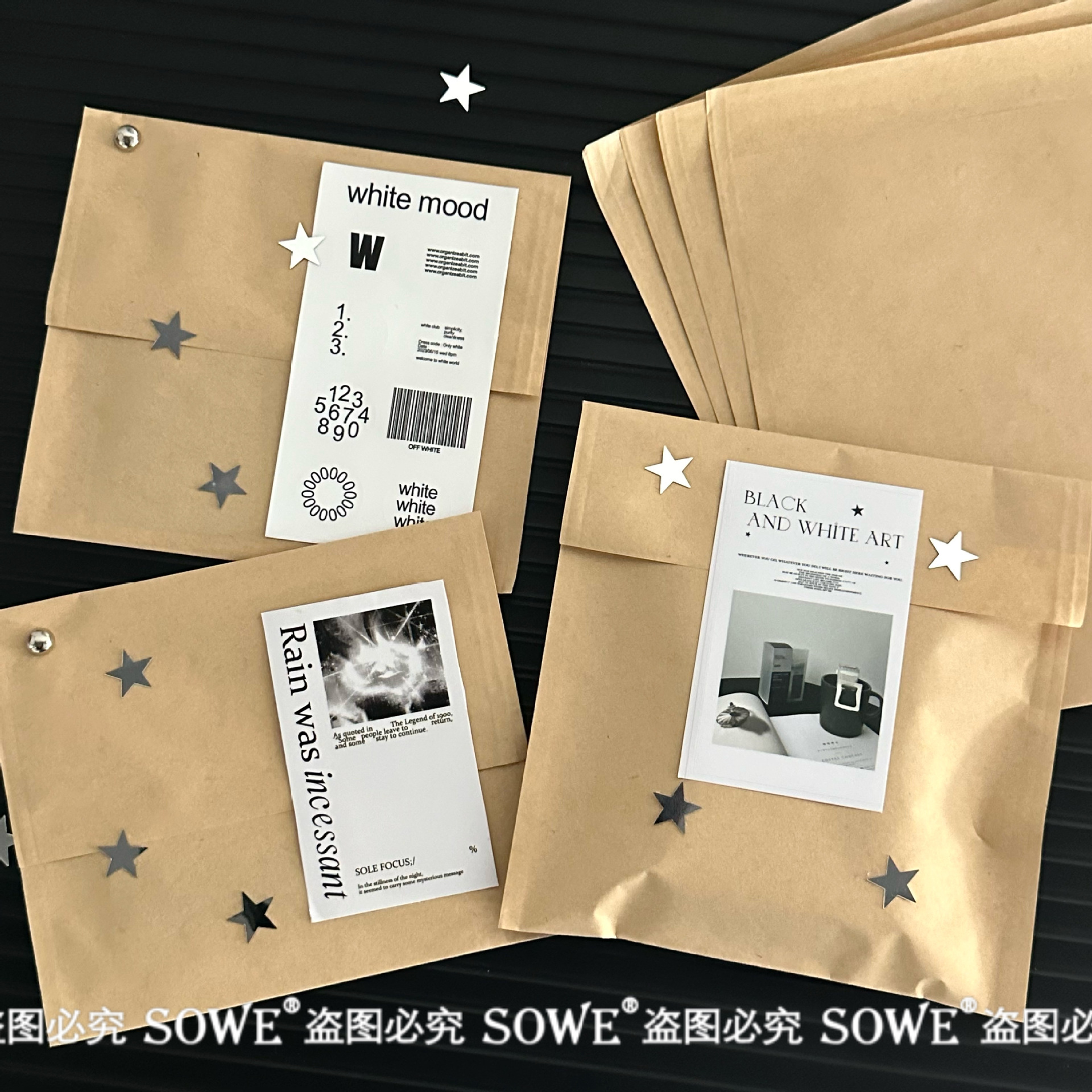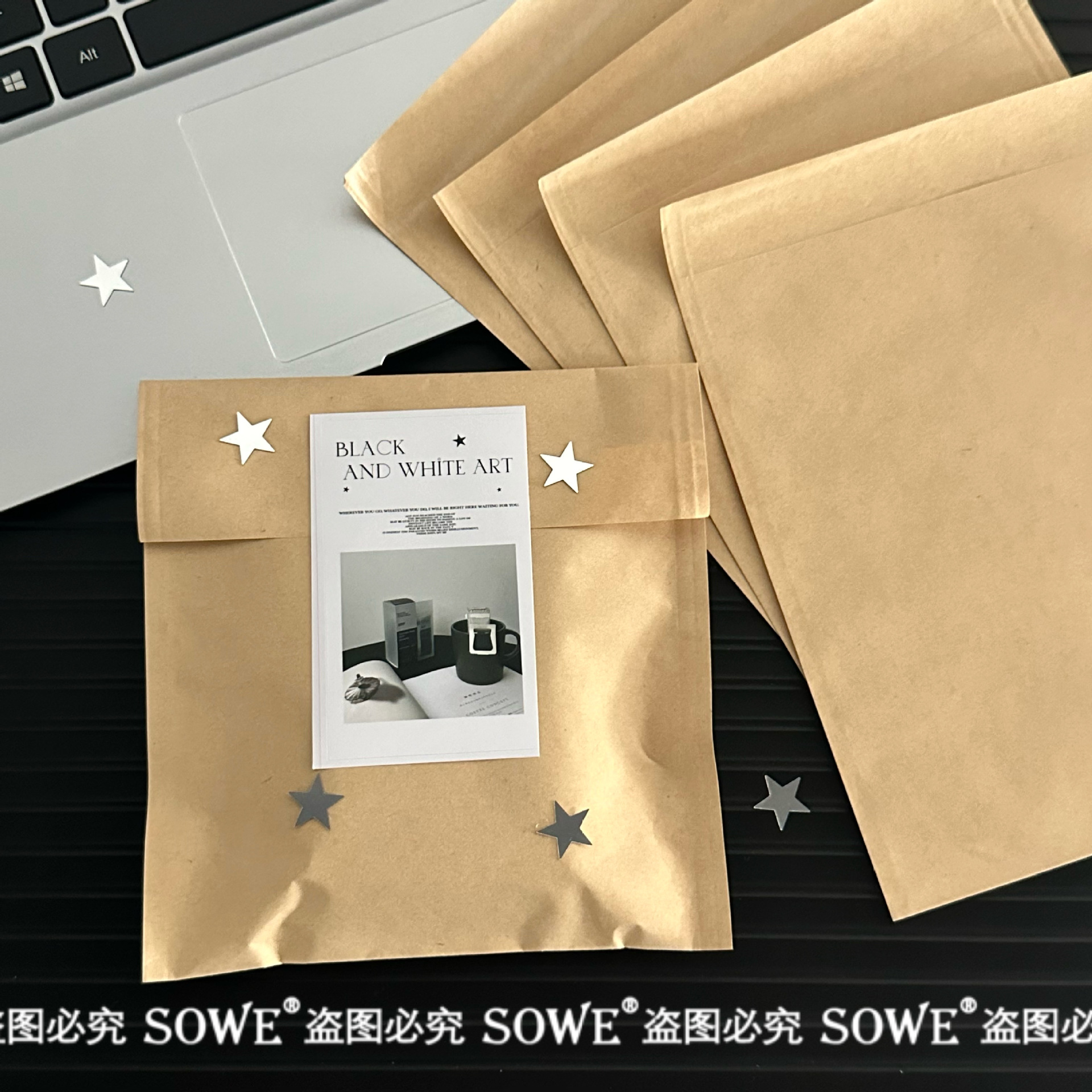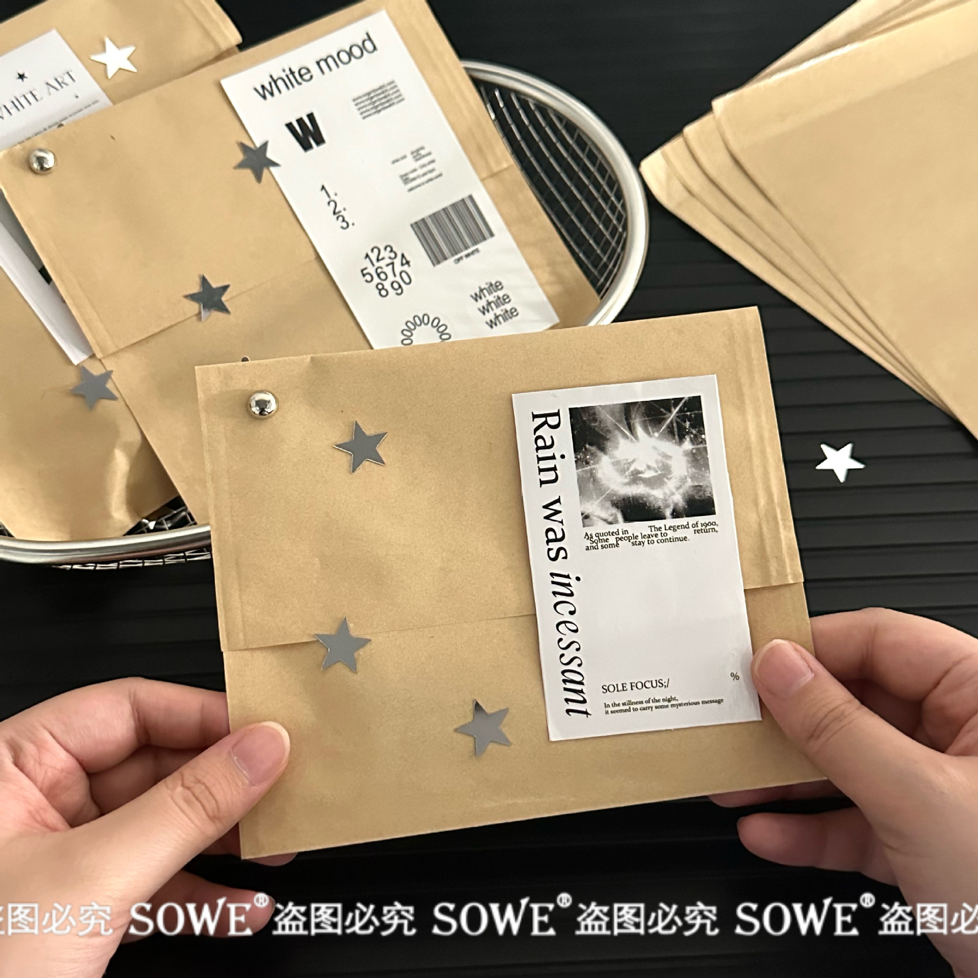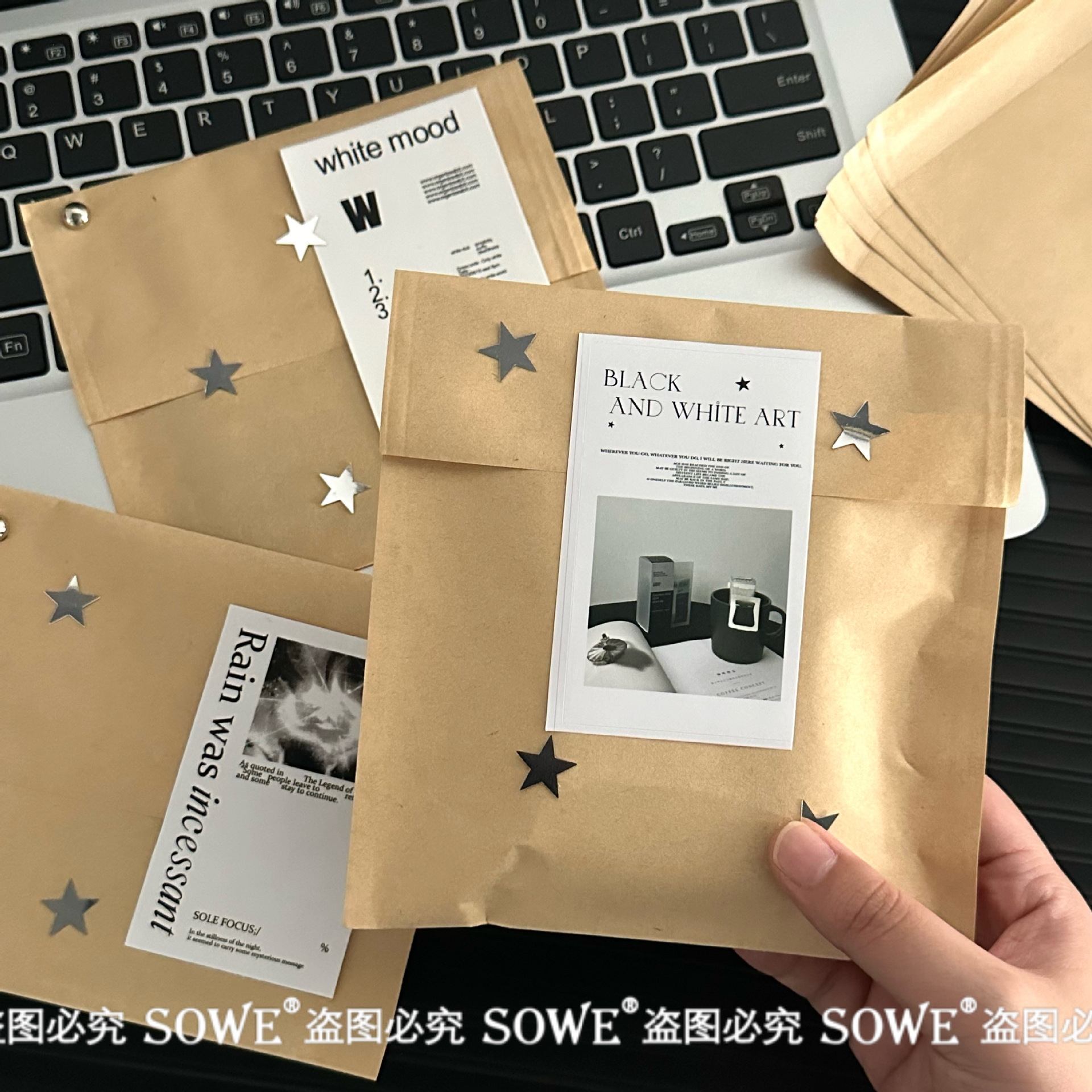 高颜值ins风星星牛皮纸袋平口袋文创打包大容量高级感包装礼品袋