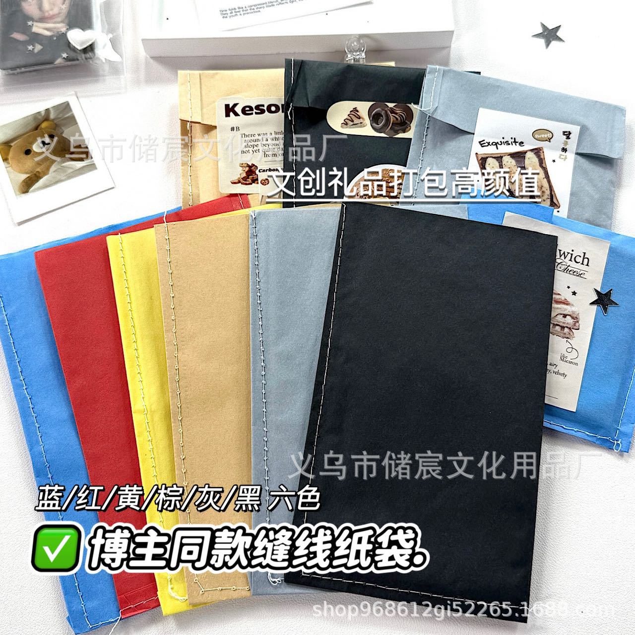 ins风硫酸纸缝线纸袋出卡文创文素材打包礼品袋高颜值包装袋平口