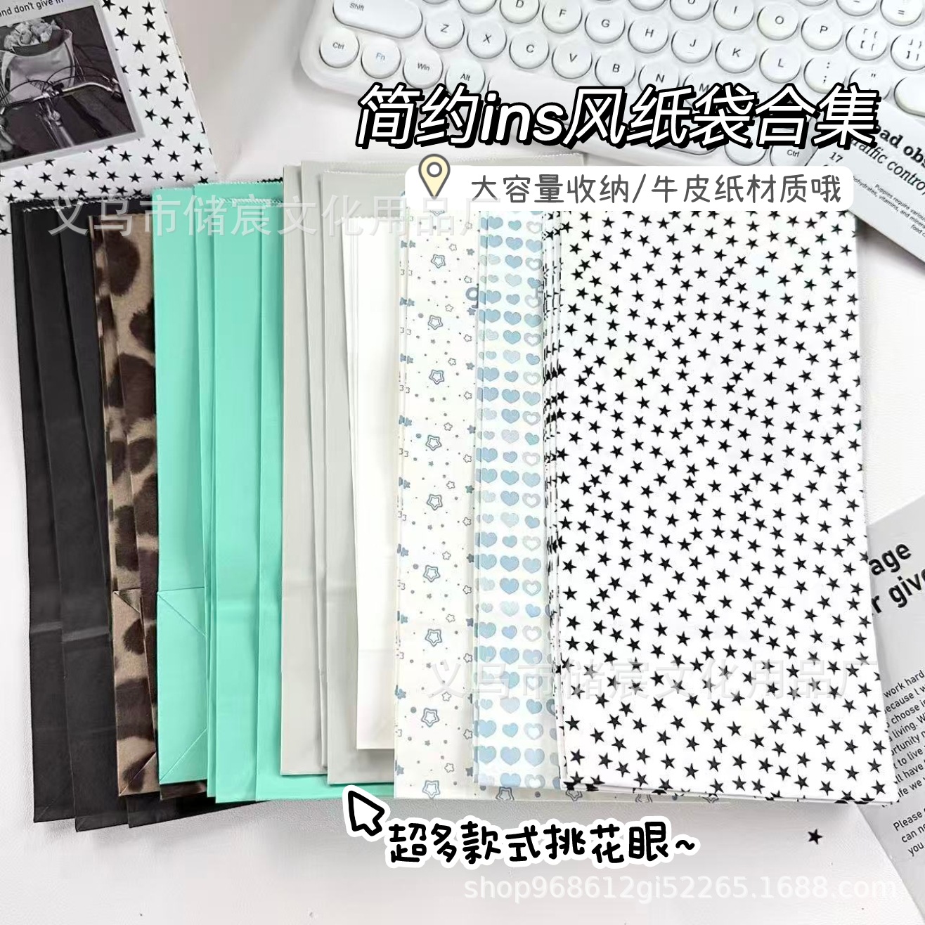 高颜值牛皮纸袋合集简约星星豹纹爱心纸袋出卡文创高质量收纳包装